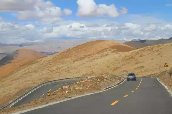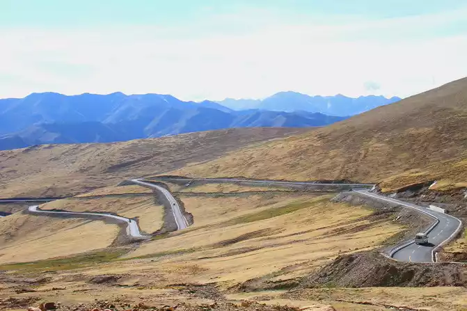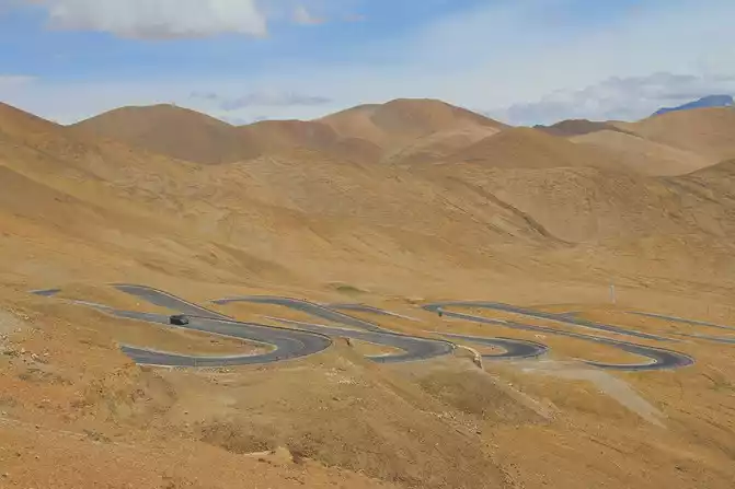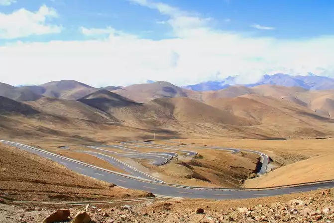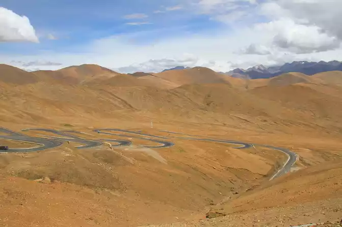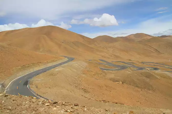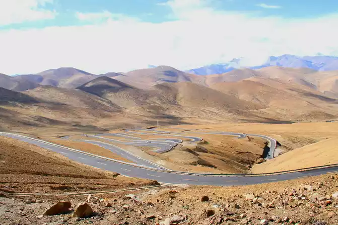 Continue to move forward, driving the car on a winding mountain road at an altitude of more than 4,000 meters. To climb countless steep slopes and go through countless sharp turns, it is said that there are 108 turns. Fortunately, the more than 110-kilometer mountain road from Dingri Baiba to Everest Base Camp has been repaired in the previous stage, and some of the winding mountain roads have just been repaired recently. The road is not wide but very smooth, the visibility is generally good at sharp turns, and there are not many vehicles that day, and it feels good to drive a car. In the past, it was all rugged, potholed dirt roads, and washboard roads, which were very bumpy, "eyes in heaven, in hell", and it took at least 5 or 6 hours to walk on the mountain road of more than 100 kilometers, but now the road is good and can be reached in less than 3 hours.