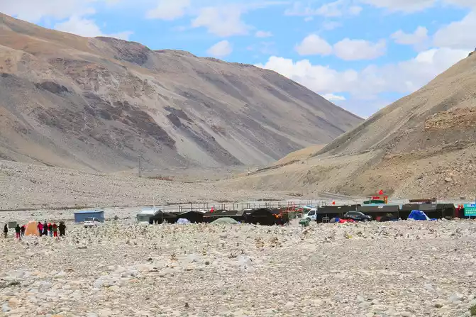 When we were about to arrive at the Everest base camp, we checked the ID card and border guard card again at the foot of the world's highest temple, Rongbu Temple, and then we finally drove the car into the Everest base camp at an altitude of 5,200 meters. What an exciting time! It is really not easy and difficult to come to Mount Everest after going through countless hardships and overcoming many difficulties. Joy, excitement, and pride hang on everyone's face. Although this is the place that everyone who loves to travel yearns for the most in their lives, due to the constraints of many factors, it was something that was not even dreamed of before, but now they not only actually come here, but also experience scenes that could only be seen in film and television and media before. The excitement is indescribable. Although the weather conditions are only average and have a great impact on the landscape, everything that comes into view is still very shocking.