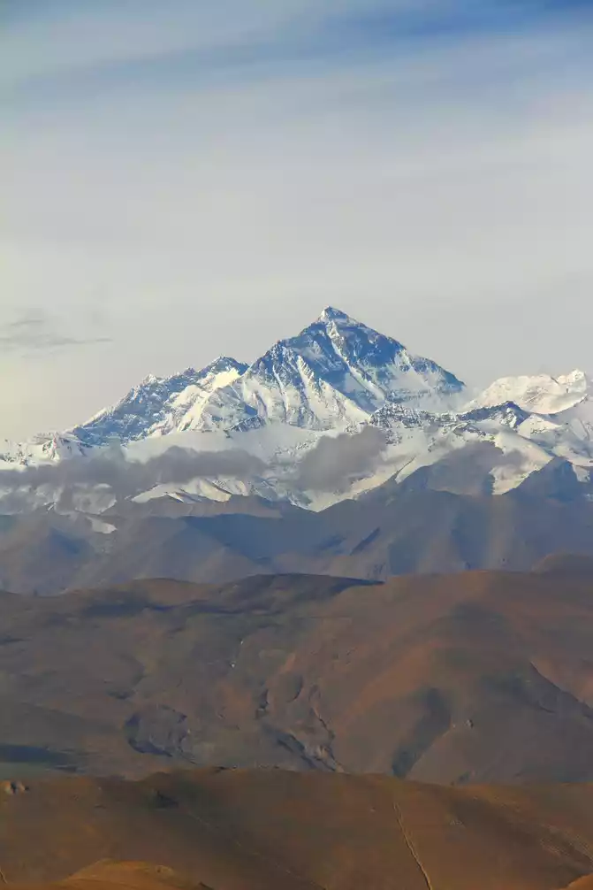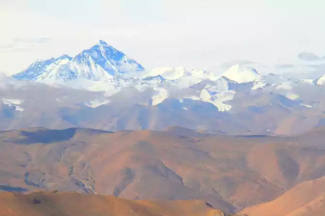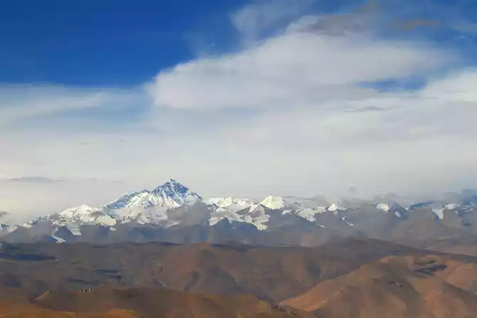 Mount Everest, which means the third goddess in Tibetan, is located on the border between Dingzhi and Nepal in the Shigatse region of Tibet, at an altitude of 8844.43 meters (the latest measured height is 8848.86 meters), and is the main peak of the Himalayas and the highest peak in the world. There are 4 peaks above 8,000 meters around Mount Everest, and more than 40 peaks above 7,000 meters, which is the third pole of the earth.