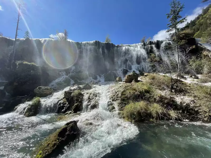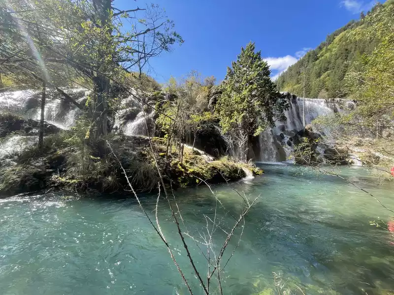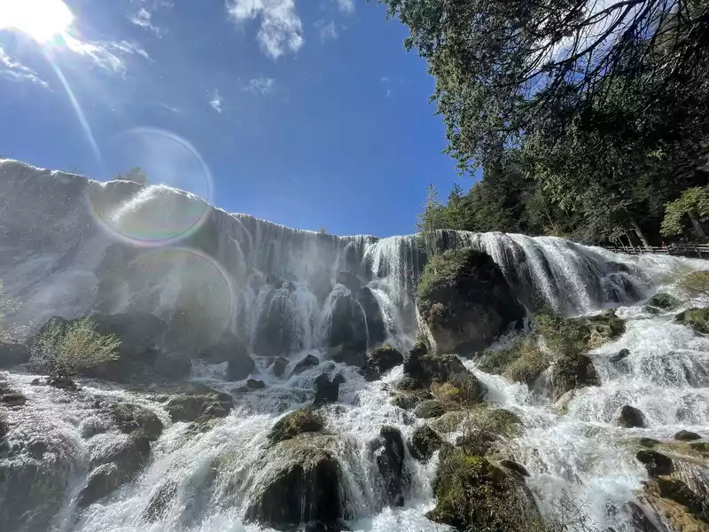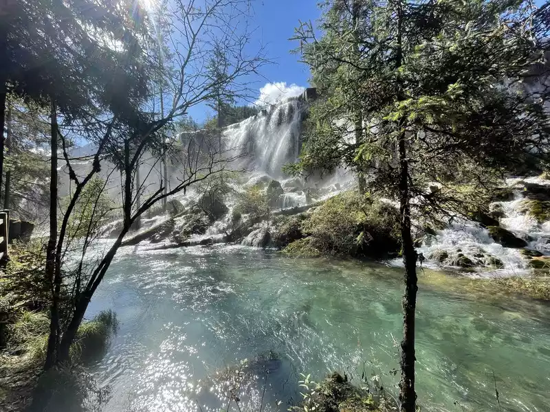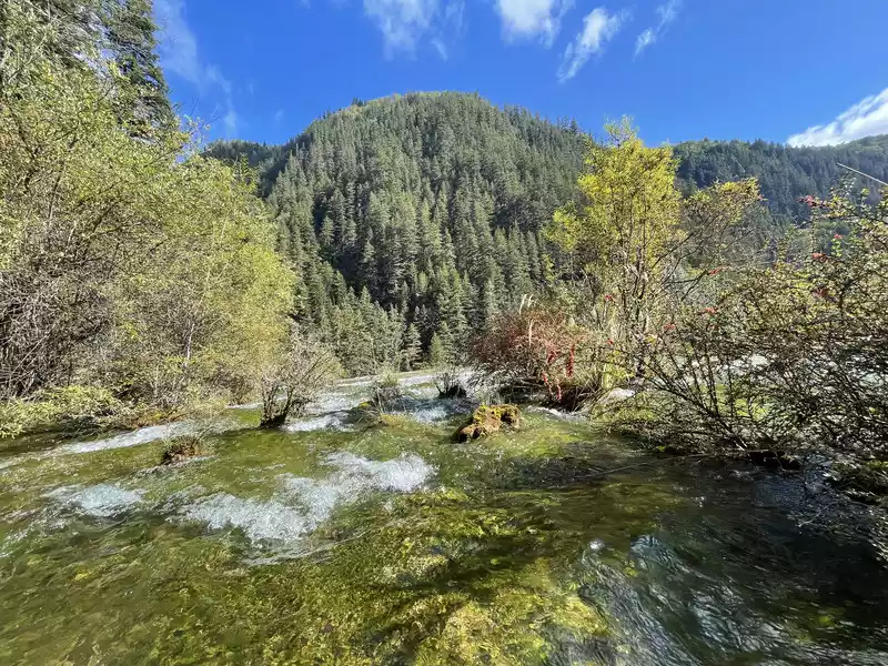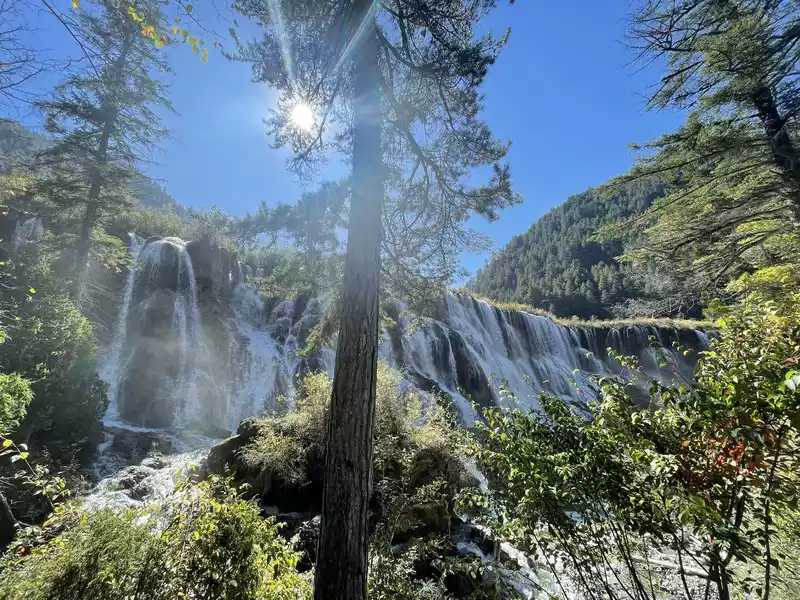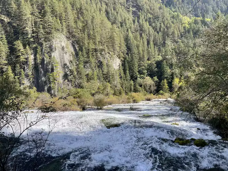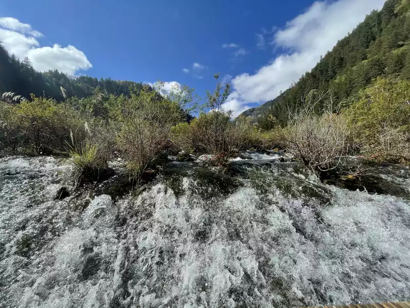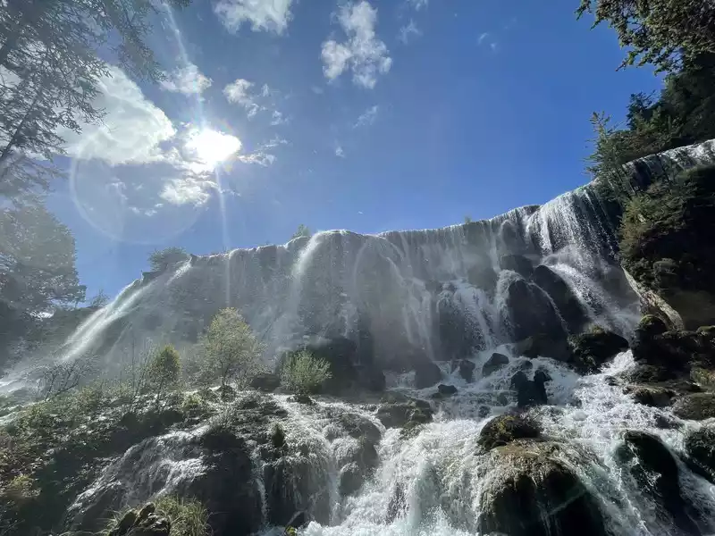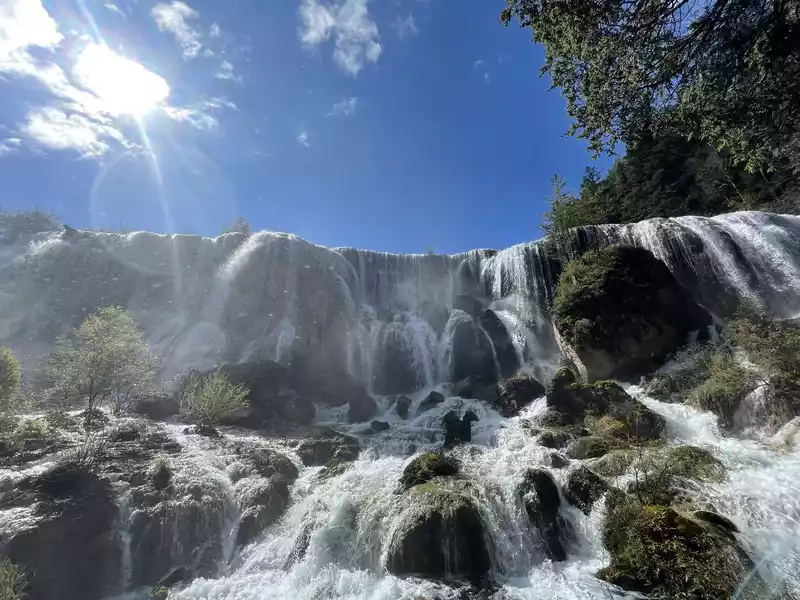 After a good breakfast, we leisurely walked to the entrance of the magical Jiuzhaigou Valley (a UNESCO World Heritage Site). Jiuzhaigou is a scenic spot, but be sure to explore it within your means. Jiuzhaigou has a main road that splits into two at Nuorilang Waterfall (the waterfall featured in the filming of Journey to the West). One road leads to the Jianzhu Lake, Panda Lake, and Five Flower Lake, while the other takes you to the Chang Lake and Five Color Pool. Most attractions are shuttled by electric buses, though some require hiking. The highest elevation is over 3,100 meters. No matter how beautiful the sights are, please don't get too excited and slow down to avoid altitude sickness.