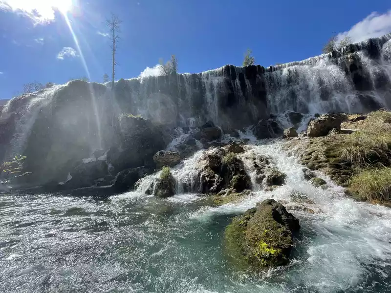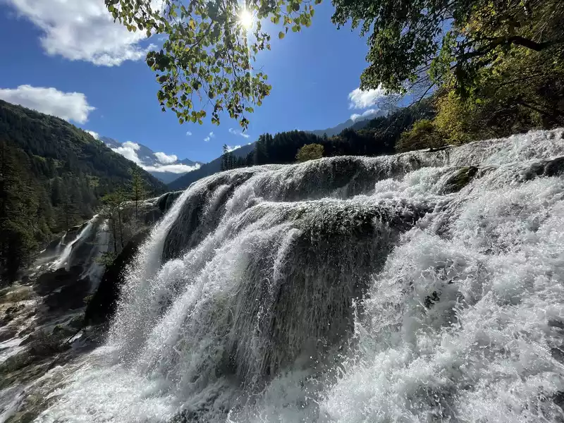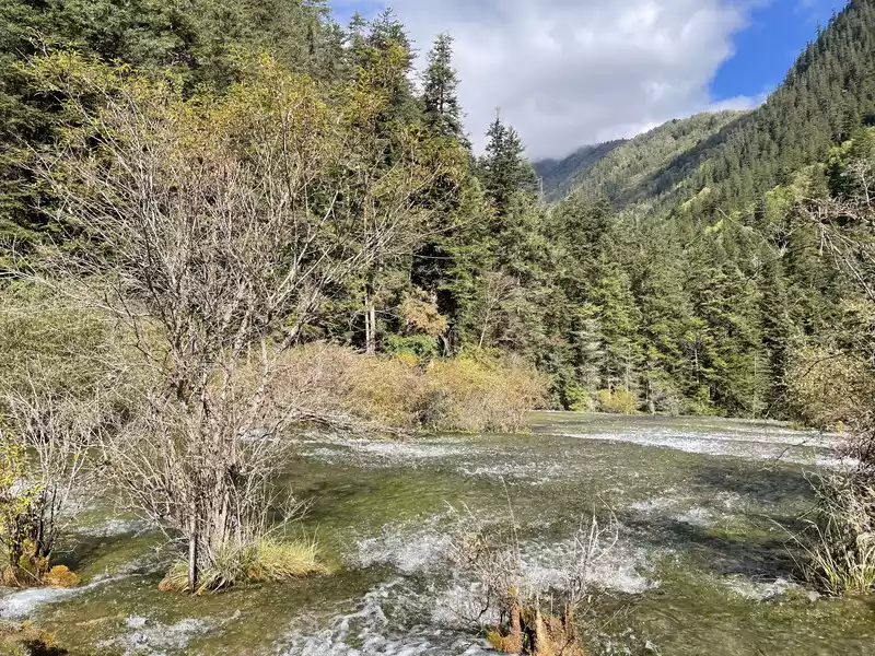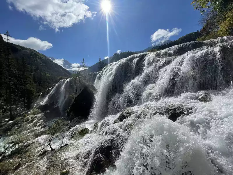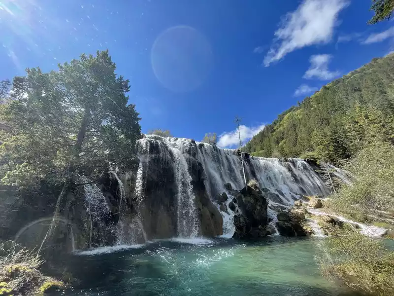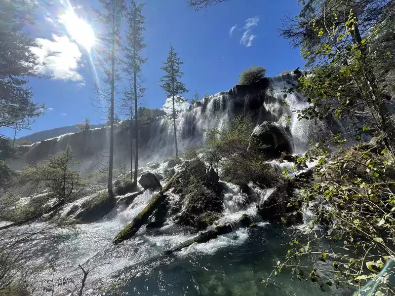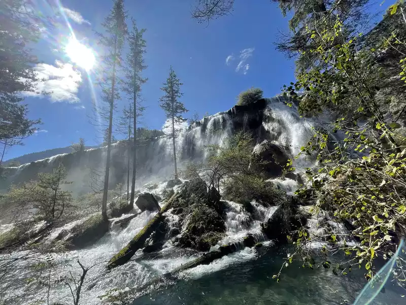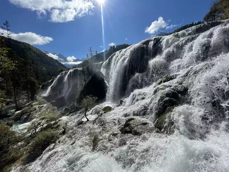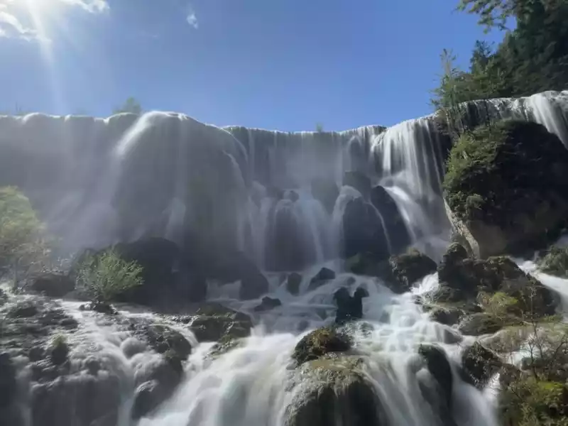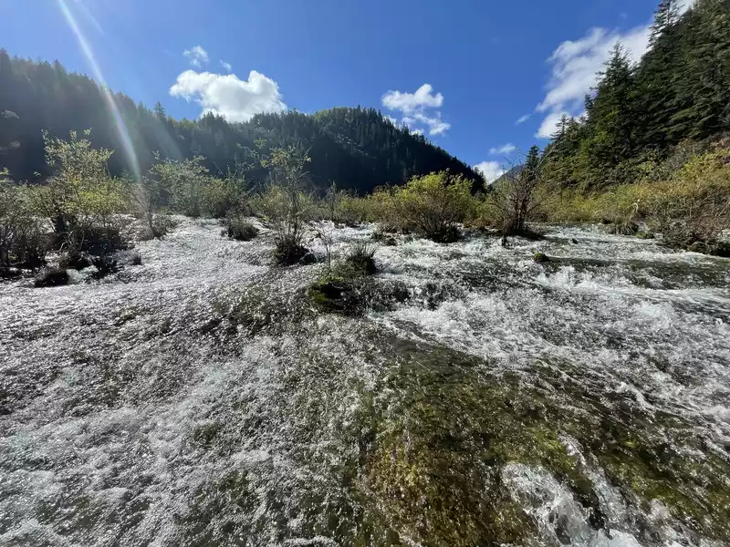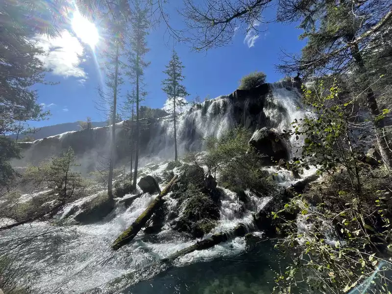 After a good breakfast, we leisurely walked to the entrance of the magical Jiuzhaigou Valley (a UNESCO World Heritage Site). Jiuzhaigou is a scenic spot, but be sure to explore it within your means. Jiuzhaigou has a main road that splits into two at Nuorilang Waterfall (the waterfall featured in the filming of Journey to the West). One road leads to the Jianzhu Lake, Panda Lake, and Five Flower Lake, while the other takes you to the Chang Lake and Five Color Pool. Most attractions are shuttled by electric buses, though some require hiking. The highest elevation is over 3,100 meters. No matter how beautiful the sights are, please don't get too excited and slow down to avoid altitude sickness.