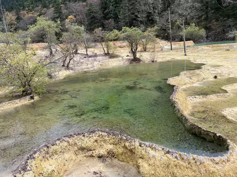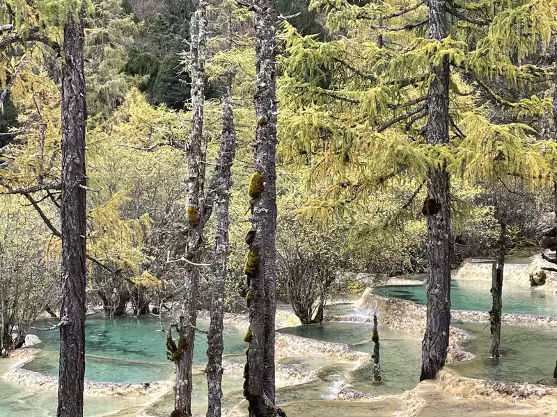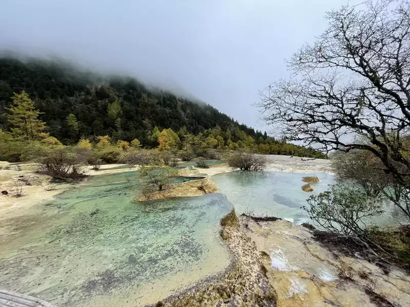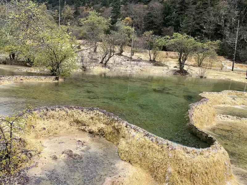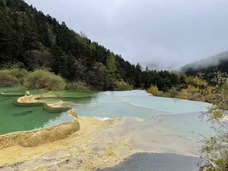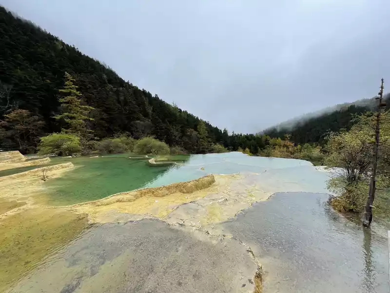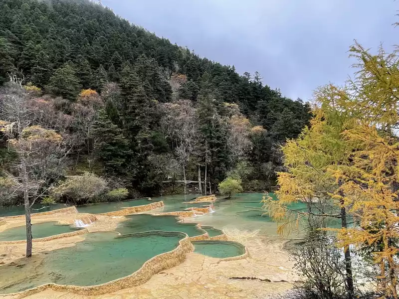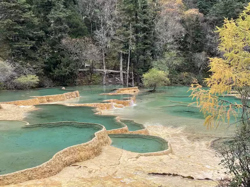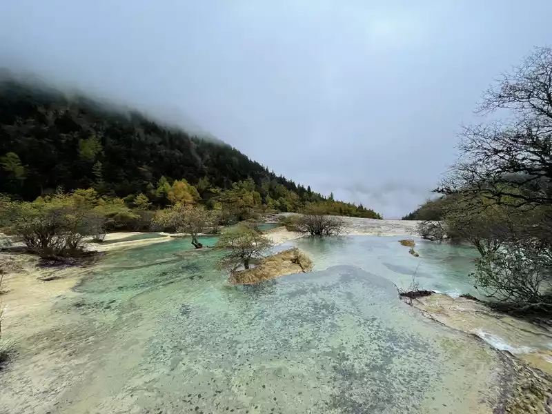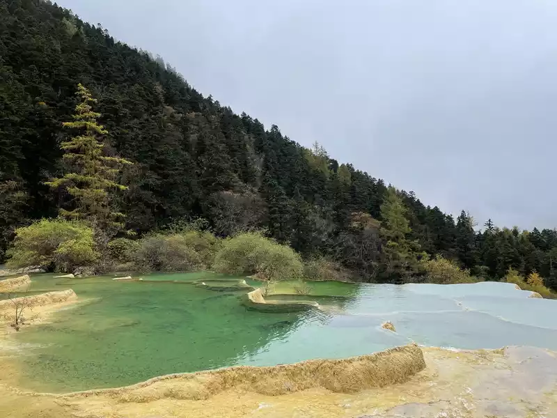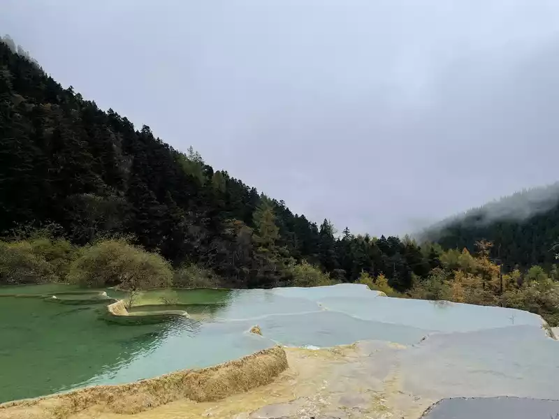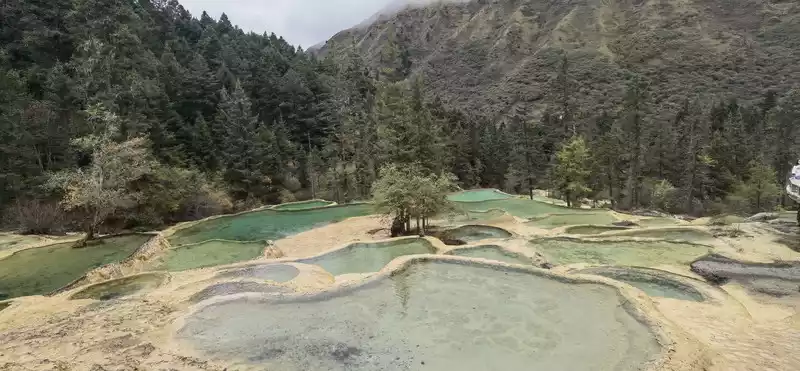 Huanglong's beauty might be enhanced by drone photography, but drone photography was prohibited in Huanglong Scenic Area at the time, so I couldn't capture the scenery better.