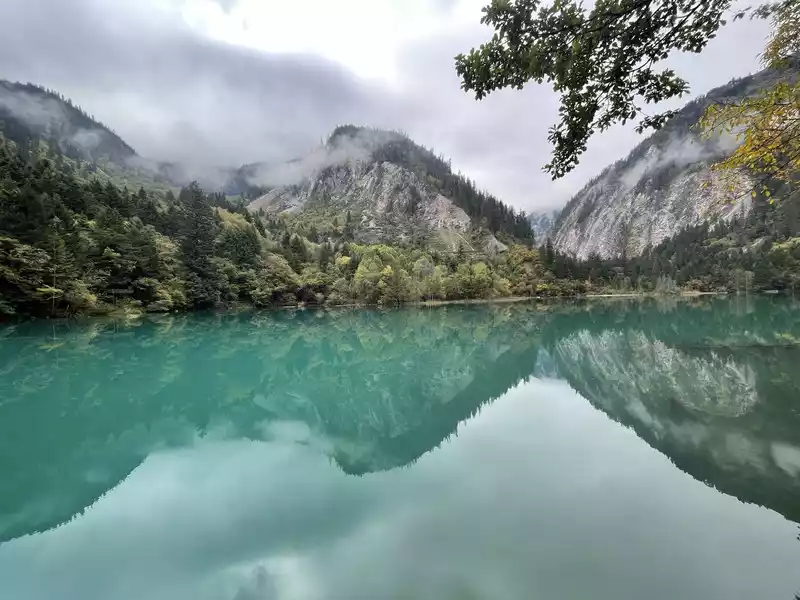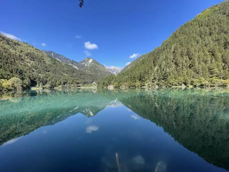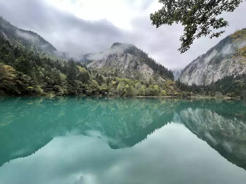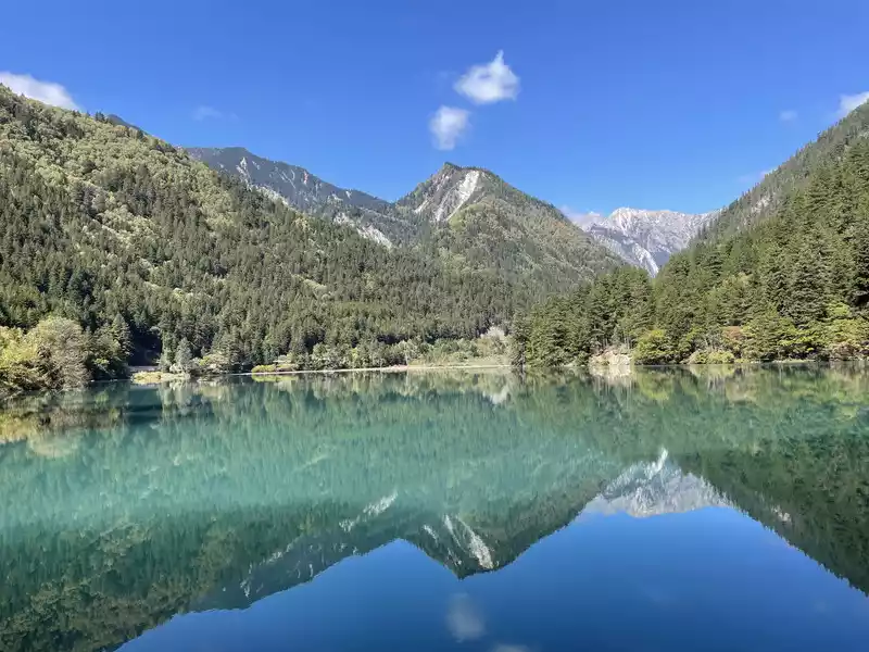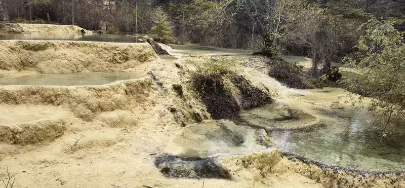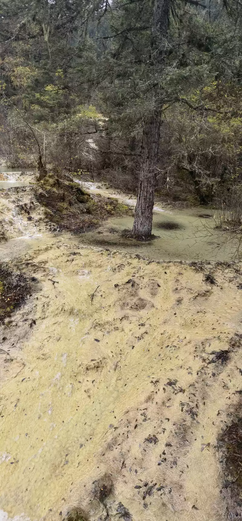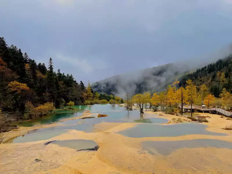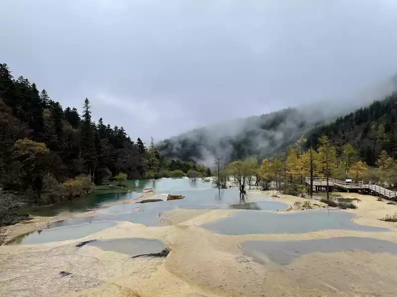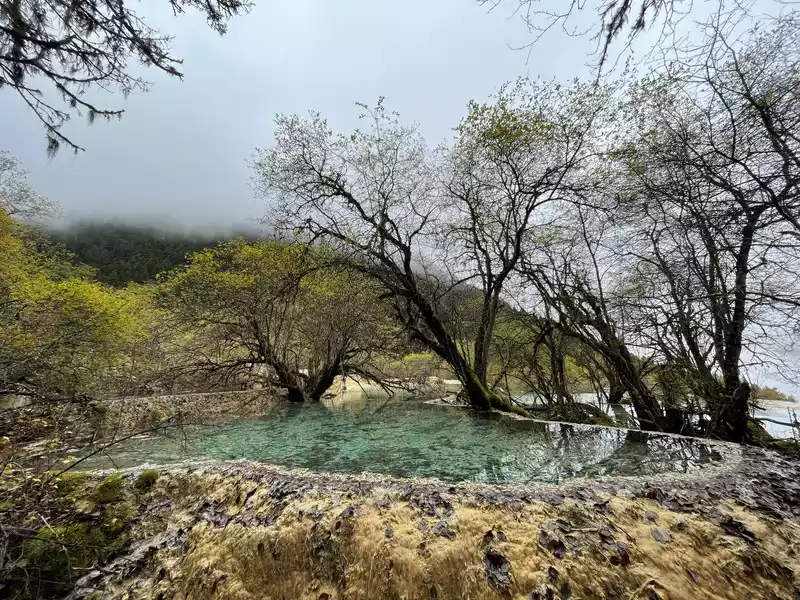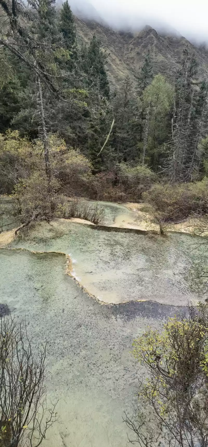 Huanglong's beauty might be enhanced by drone photography, but drone photography was prohibited in Huanglong Scenic Area at the time, so I couldn't capture the scenery better.