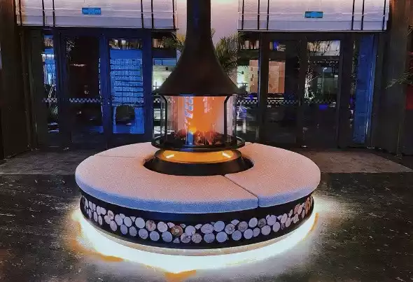 Entering the Andian branch of Jiuzhaigou Indigo Hotel, one is struck by the "Dele Mansion" residence, inspired by the Ando Tibetan culture. Centered around a traditional Tibetan fireplace, the lobby exudes aristocratic elegance, while the wooden ceiling and colorful carpet create a striking aesthetic.