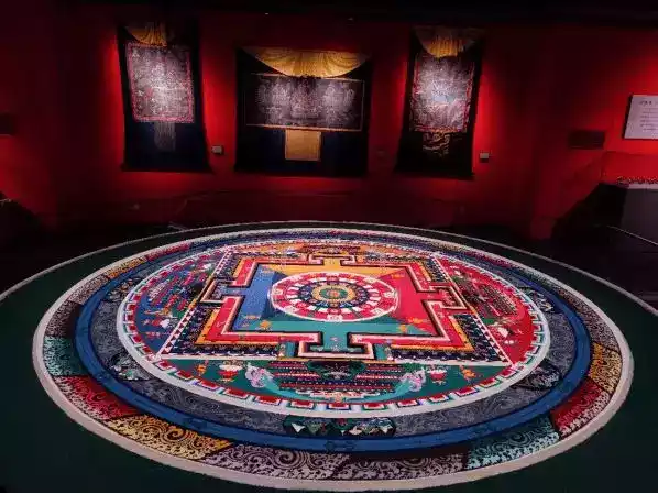 Several unique outdoor courtyards are located on different floors of the hotel. Inside the courtyards are the "Zang Cang" themed rooms, decorated with traditional Qiang fabric embroidery and thangka paintings unique to the Aba Tibetans. The overall warm color design makes people feel natural and warm. Open the door, you can immerse yourself in the Tibetan and Qiang culture. At the You Zang Neighborhood Restaurant, symbolizing a bountiful harvest, the golden hues and design blend traditional Amdo Tibetan etiquette with British manor culture, offering guests a diverse and distinguished dining experience. The hotel's signature Tibetan soup pot banquet delighted our palates and satisfied our craving for Tibetan cuisine. A slow-cooked broth made from natural yak tail bones, paired with seasonal vegetables and a bowl of locally made yak yogurt, creates an authentic Tibetan delicacy that will linger in our memory. Afterward, we enjoyed a cup of Kung Fu tea and explored Jiuzhaigou Luneng Beauty Plaza, a town dedicated to the intangible cultural heritage of China Green Development and Luneng Group. This experience offers both digestion and health, as well as a glimpse into local culture – a truly unique experience. Arriving at the town's entrance from the hotel, we were intrigued by a Tibetan chess game design. The town's Intangible Cultural Heritage Museum is filled with breathtakingly exquisite thangkas and mandalas meticulously crafted from ground gemstones. The rich collection of paintings, artifacts, and artworks here showcases Jiuzhaigou's unique Tibetan customs and culture. Here, visitors can witness the continuous evolution of Tibetan elements throughout history, immerse themselves in the daily lives of the Tibetan and Qiang peoples, and even experience a 2,500-year-old mandala through holographic projections.
