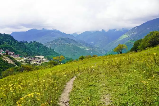 Who would have thought that just 15km away from Jiuzhaigou, separated by a mountain, lies such a secluded and untouched secret? Here, you'll find pristine snow-capped mountains, lush green grasslands, and the simple and honest Tibetan people, a place steeped in history, tranquility, and undisturbed tranquility. This is the tranquil and beautiful Zhongchagou, adjacent to the Hotel Indigo Jiuzhaigou. Zhongchagou maintains its original Tibetan village style, with wooden houses nestled side by side and colorful prayer flags fluttering in the wind. It's a breathtaking sight, a stark contrast to the vibrant lights of Jiuzhaigou and Luneng. Entering the tranquil and peaceful Zhongchagou, wildflowers emanate their delicate fragrance, lush green grass blankets the alpine grasslands, and cattle and sheep dot the landscape. Staggered with withered wood fences and solitary, towering trees rise from the mountains, creating a picturesque scene. From the depths of the village, the sound of people reading echoes across the desolate mountaintops, like a magnificent symphony playing in the valley.