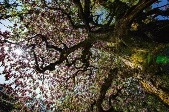 With the permeating fairy mist, Boss Mei and I went out to the green mountains and went straight to the top of the Ten Thousand Buddhas. The trail is 3 kilometers, we stop and go, panting but listening to the wind chimes crisply and not uncomfortable. The sea of large-leaved wild rhododendrons along the way will bring huge surprises from time to time, layer upon layer covering the entire mountain, in the sea of flowers, incomparably magnificent.