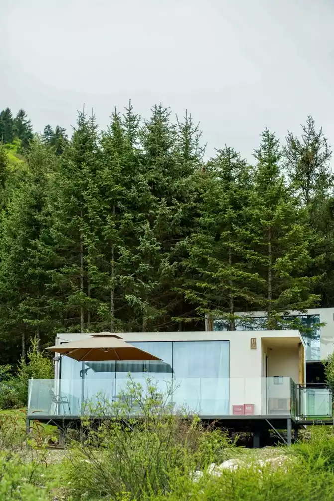 Alone in a quiet place, backed by Cangshan, looking at the mountains in the distance. One by one, the container-style houses have large glass floor-to-ceiling windows and terraces, and you can see the snow-capped mountains in the distance when you open the curtains in the morning.
