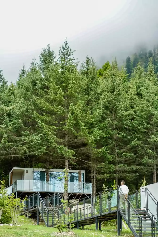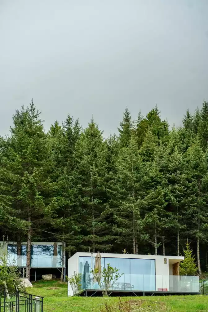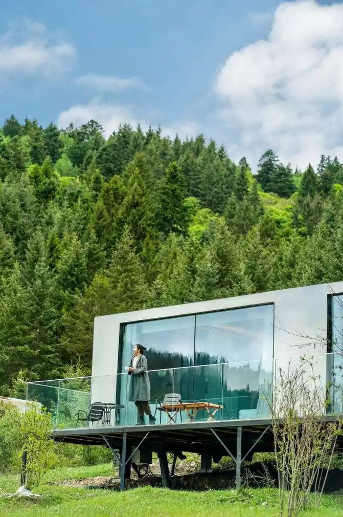 Looking directly through the glass window is like looking at a beautiful landscape painting. In the morning, I woke up and the clouds and mountains were foggy, and I could faintly see the snow-capped mountains on the top of the opposite mountain, with the mountains and forests as the scenery and the clouds and mist as the screen, sleeping in the forest at an altitude of more than 2,500 meters.