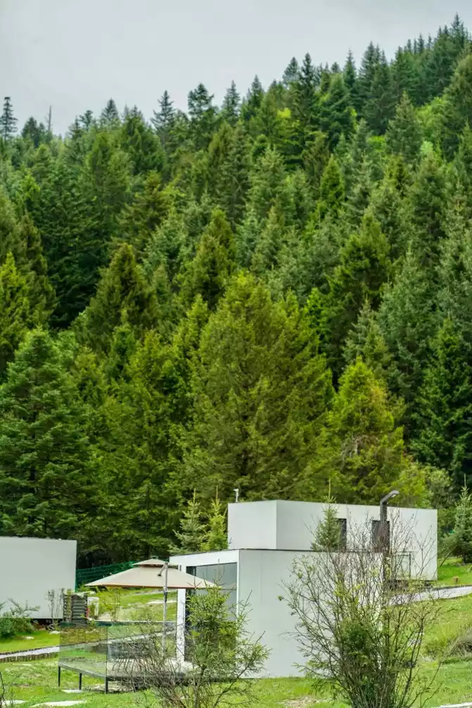 There is a Jiuzhai Forest Earth Warehouse in Chagou, a container hotel located on the hillside, and the rooms are scattered on the hillside and blend in with the forest.