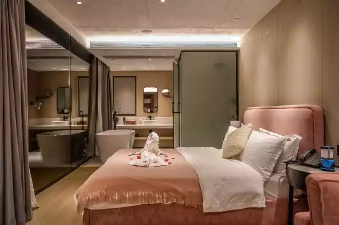 fully intelligent facilities, excellent experience, automatic music as soon as you enter the door, good taste, jazz and other music screening that make people feel comfortable. Evian's water, Dahongpao tea, bathing, etc. are all five-star hotel standards... Drawing the curtain is an immersive natural environment.