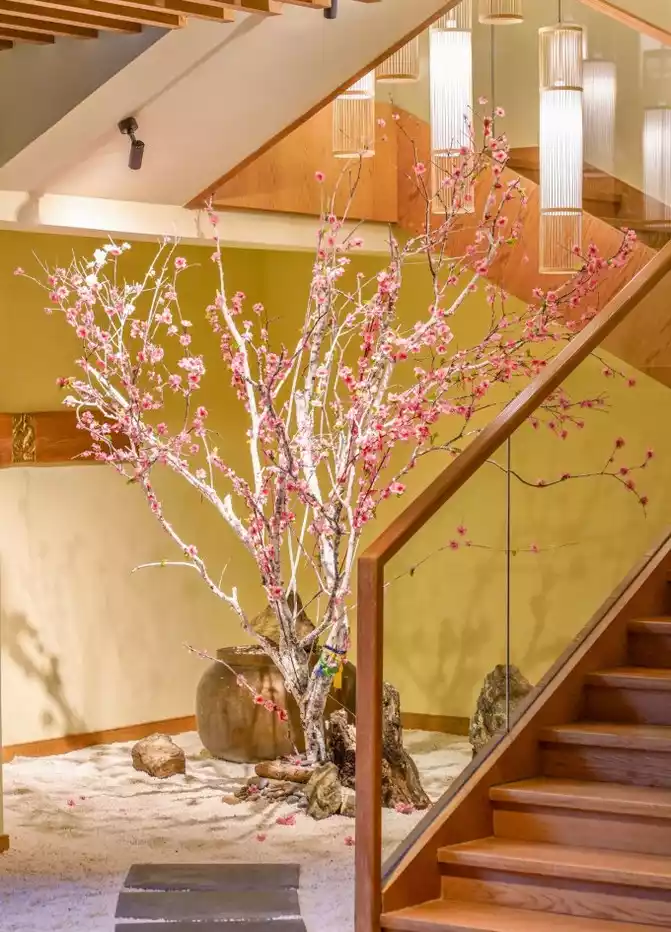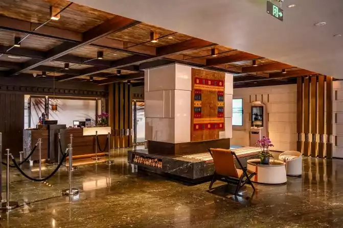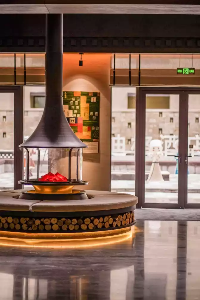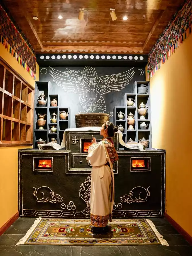 There is a fire pit in the middle of the lobby, highlighting the strong characteristics of Tibetan houses and implanting Tibetan daily life culture.