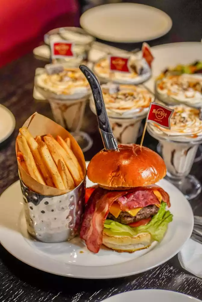 This hard rock restaurant in Jiuzhaigou not only eats American fast food, but also listens to live bands. [Legendary Burger] is their signature. It's too thick, I feel like I can share it with two people, otherwise one person will be completely full after eating this burger!