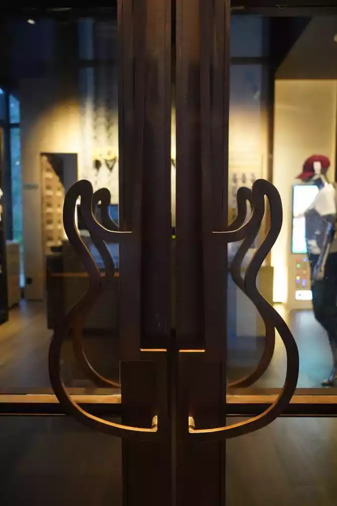 The details of the entire store are also "rock", and the door handles are all in the shape of a guitar.