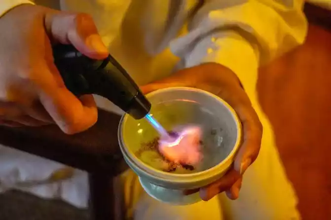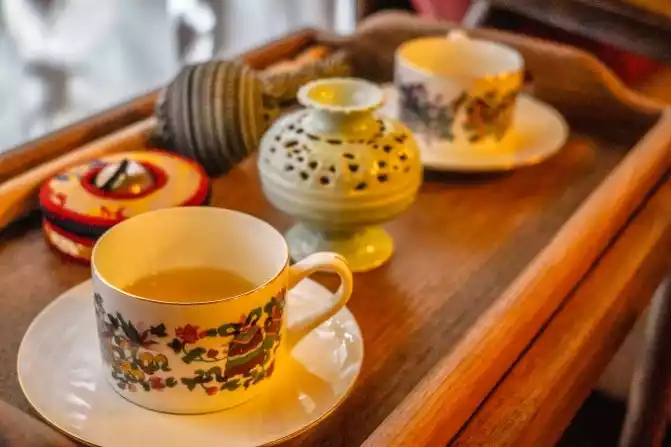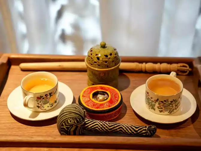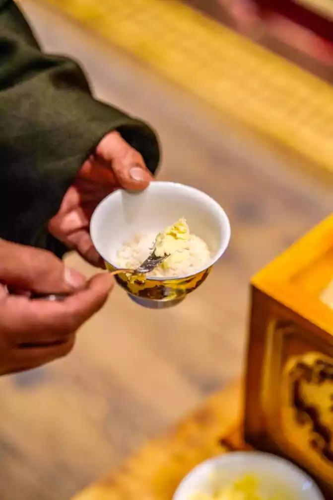 ghee tea started with tea cheese, ghee, and sugar separately in a teacup.