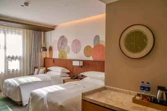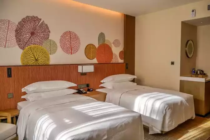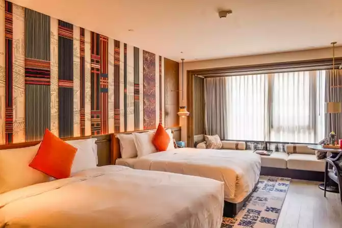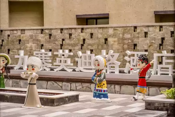 The hotel has 315 rooms and suites, with a relatively youthful design style and bright colors, reflecting the colorful scenery of Jiuzhaigou.
