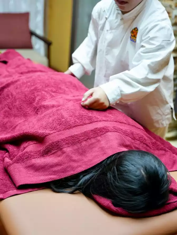 Tuina techniques combine different techniques and rituals of Tibetan medicine, traditional Chinese medicine, and Taoist medicine (including Fu Hui Ling, Vajra Quan Acupuncture Points, Four Wheels of Sound Thought, Wisdom Vajra Massage, and Vajra Stick Closing Acupuncture).