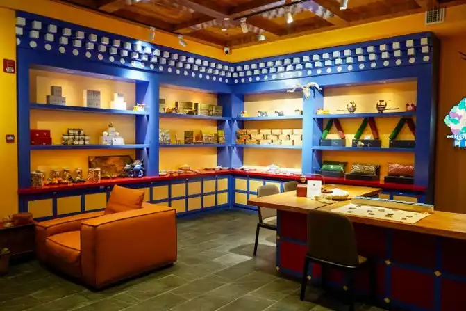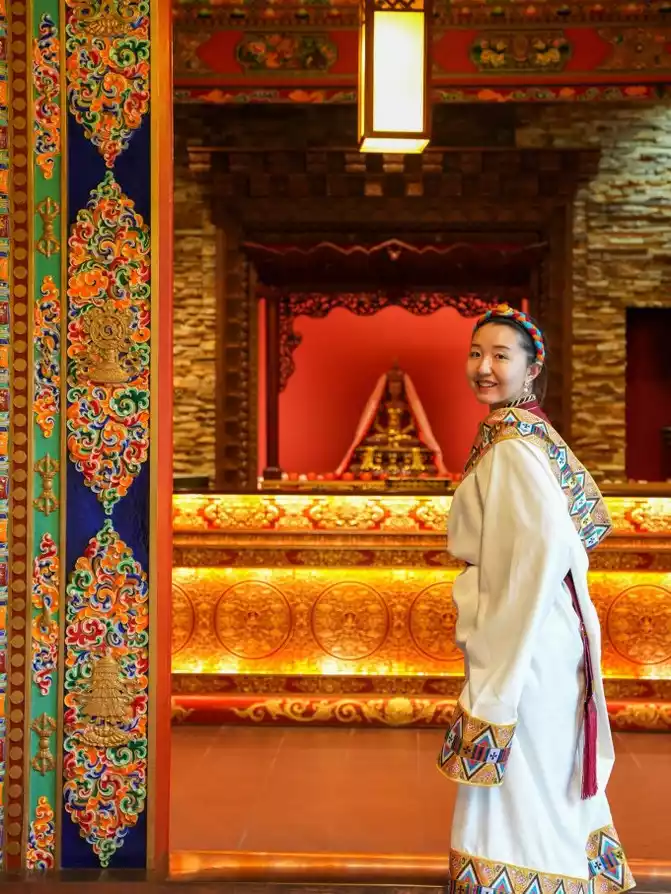 The library is based on the rich colors of traditional thangkas, and the decoration follows the fine pattern of the "Dele Mansion", with bright colors, reproducing the art of life of the former mansion. Drink a cup of afternoon tea with Tibetan style here, and then look for the pure land of "one flower, one world, one leaf and one Bodhi" in the sea of books.
