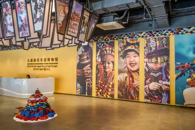 The best way to get to know a city is to walk into the local museum. At the entrance of Jiuzhai Luneng Beautiful Hui is the Jiuzhai Tibetan and Qiang Intangible Cultural Heritage Museum.