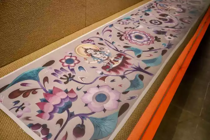 Thangka, also known as cloth painting, is a unique work of art in Tibet. It can be created with a variety of artistic techniques such as color painting, embroidery, and silk piling. The painted works use mineral and plant pigments, mixed with animal glue, cow bile, etc., to keep the color bright and not fade for a long time. The work is surrounded by brocade edges and run through wooden shafts to facilitate hanging offerings and preaching. The themes include Buddha, Bodhisattva, Buddha Mother, Dharma Protector Vajra, eminent monks, patriarch biographies, etc., and modern works also reflect folk customs. Its form is generally square, with dimensions as small as one foot and as large as one zhang or several zhang square.