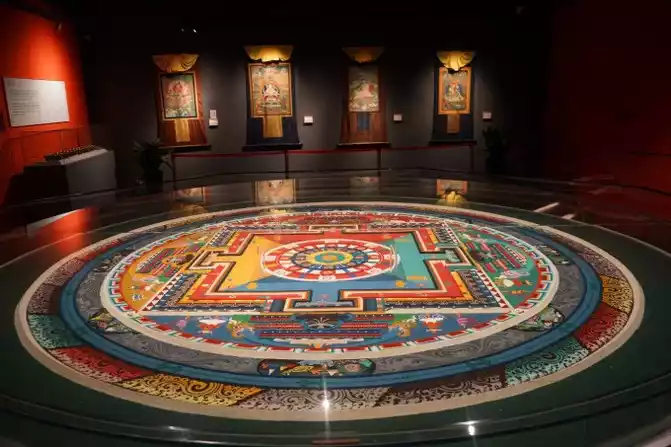 This mandala made of gemstones milled into powder is really beautiful, it took several months, and it was very huge. It was really shocking.