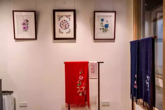 Tibetan and Qiang weaving and embroidery, Tibetan weaving skills and Qiang embroidery skills are displayed