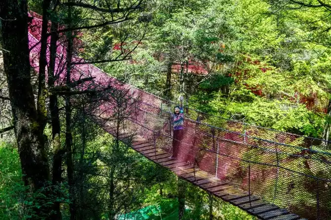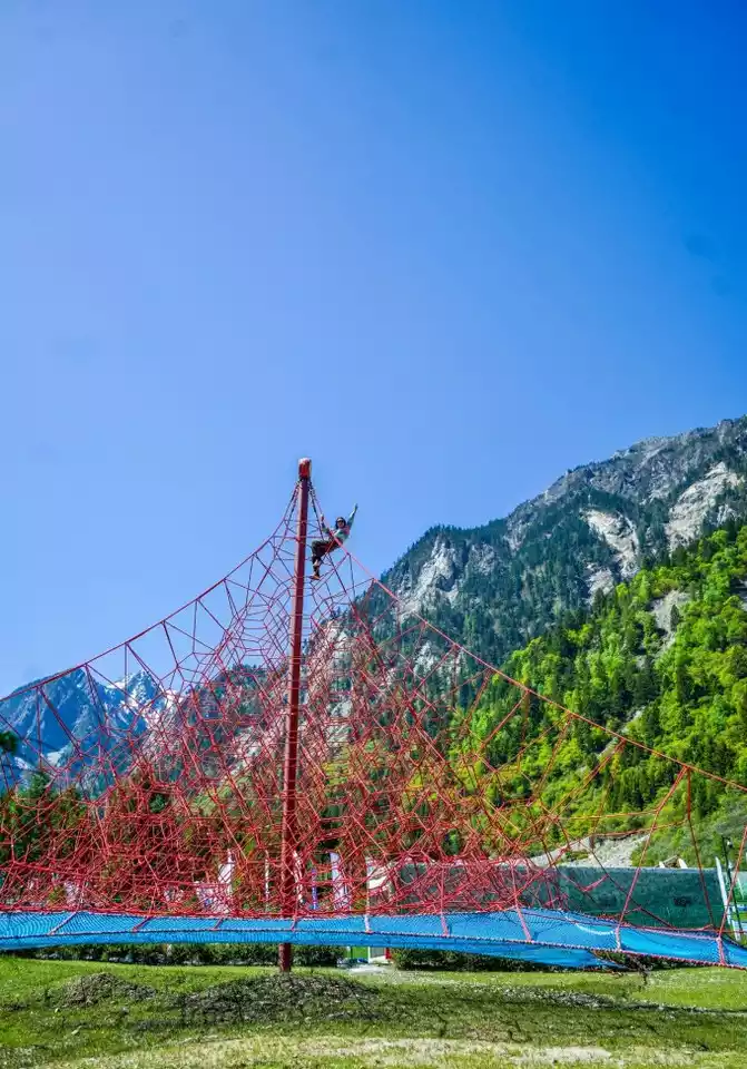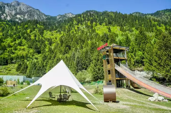 Green 7 Park is located on the mountain behind the Hilton Hotel, on the No. 1 platform of Zhongcha Village, an outdoor adventure park under the snow-capped mountain, which can be played by adults and children.