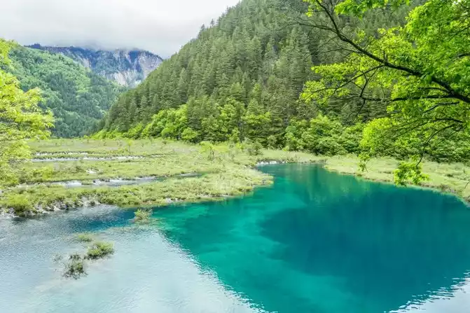 Although we encountered cloudy weather when we went to Jiuzhaigou, the water in Jiuzhaigou is really beautiful. Blue is pure, blue is translucent.