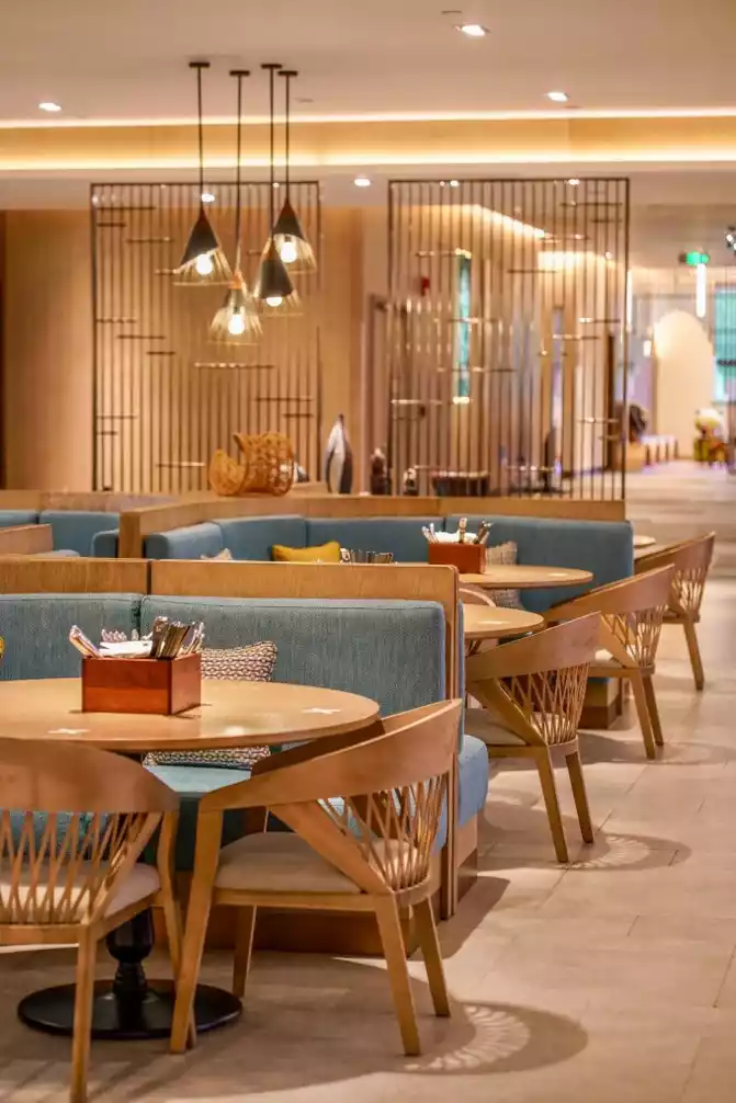 The all-day dining restaurant on the first floor of the hotel -- Huahui Wei The design concept of the five-flower sea attraction in Jiuzhaigou is to enjoy a romantic time in a colorful wonderland.