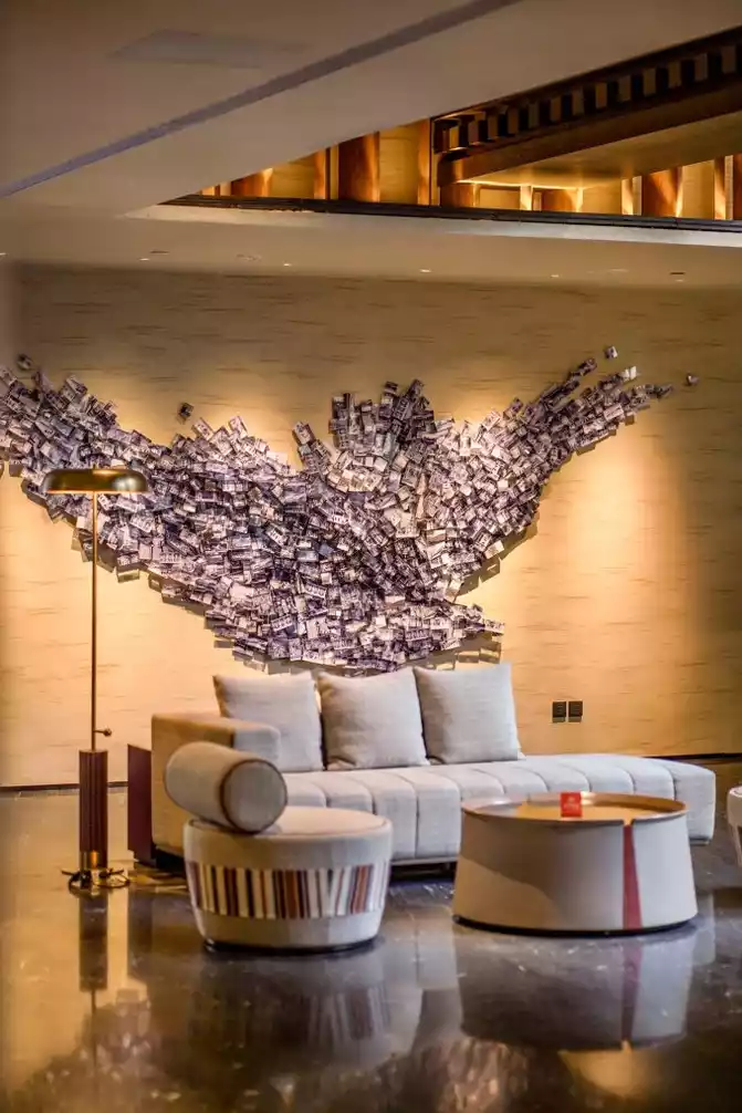 Every Hotel Indigo is designed with local character at its core. The Hotel Indigo Jiuzhai is characterized by the most representative "Condor" in Zhongchagou, where the hotel is located, as the focus of decoration, such as the wall decoration in the lobby and the door handles in each room.
