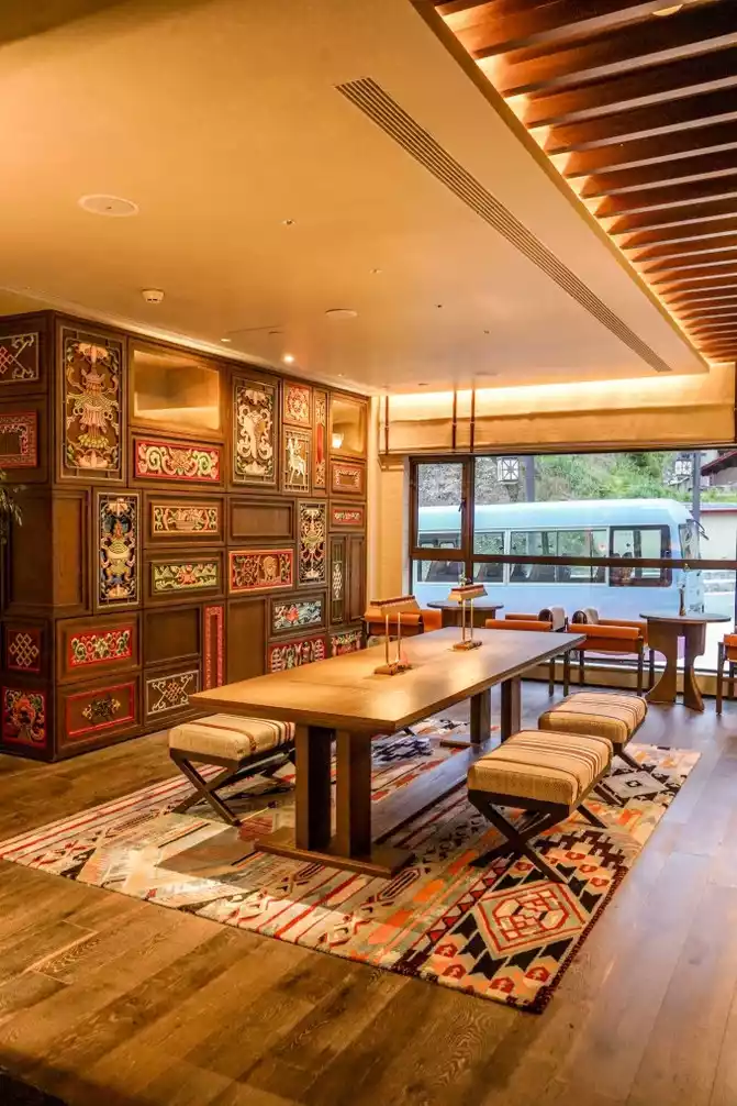 addition to the Condor, all corners of the hotel are designed with design elements unique to the local Tibetan art form of life, such as Xiangba, Qiang embroidery, yak and fire pond.
