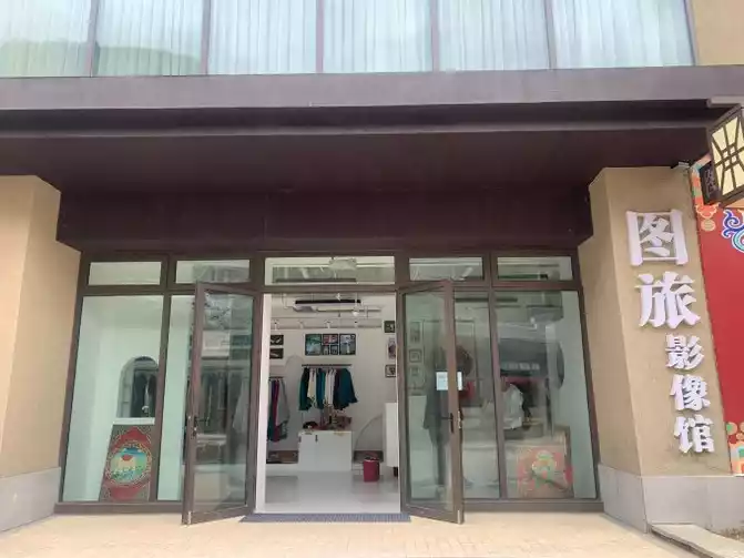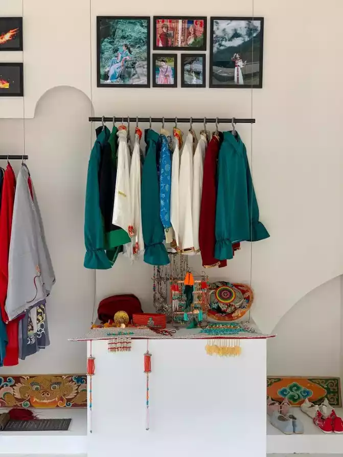 Our set of Tibetan and Qiang traditional costumes is rented in one of the shops in Jiuzhai Luneng Meihui, which is called the Picture Travel Museum, and their home not only has Tibetan costumes, but also Hanfu. It's pretty good-looking.