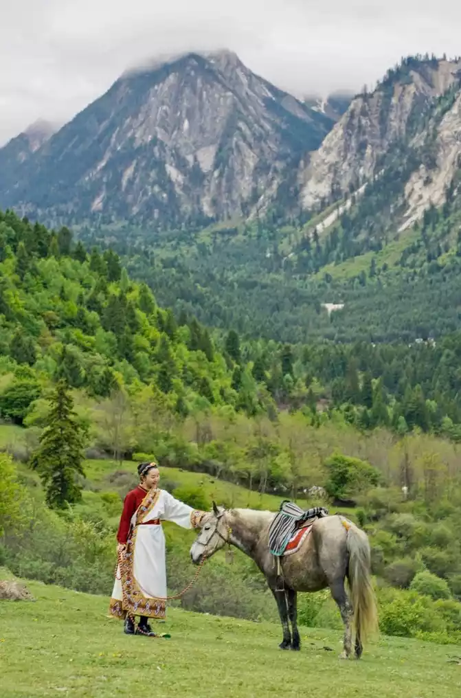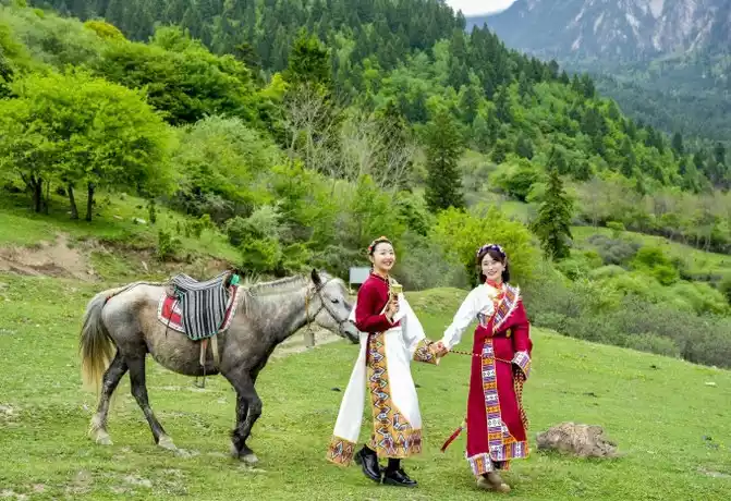 Zhongchagou was not inhabited by Tibetans at first, and the earliest Tibetan royal family in ancient Tibet was a family called "Dele", in order to avoid the battle between the Tibetan tribes, through jungles, swamps, mountains and lakes, under the leadership of the condor, this hidden rich valley was discovered, and settled here for hundreds of years. The "Dele" family, who are good at breeding horses, are now the Amdo Tibetans, and their ancestors brought a deep and unique Tibetan culture to Zhongchagou.