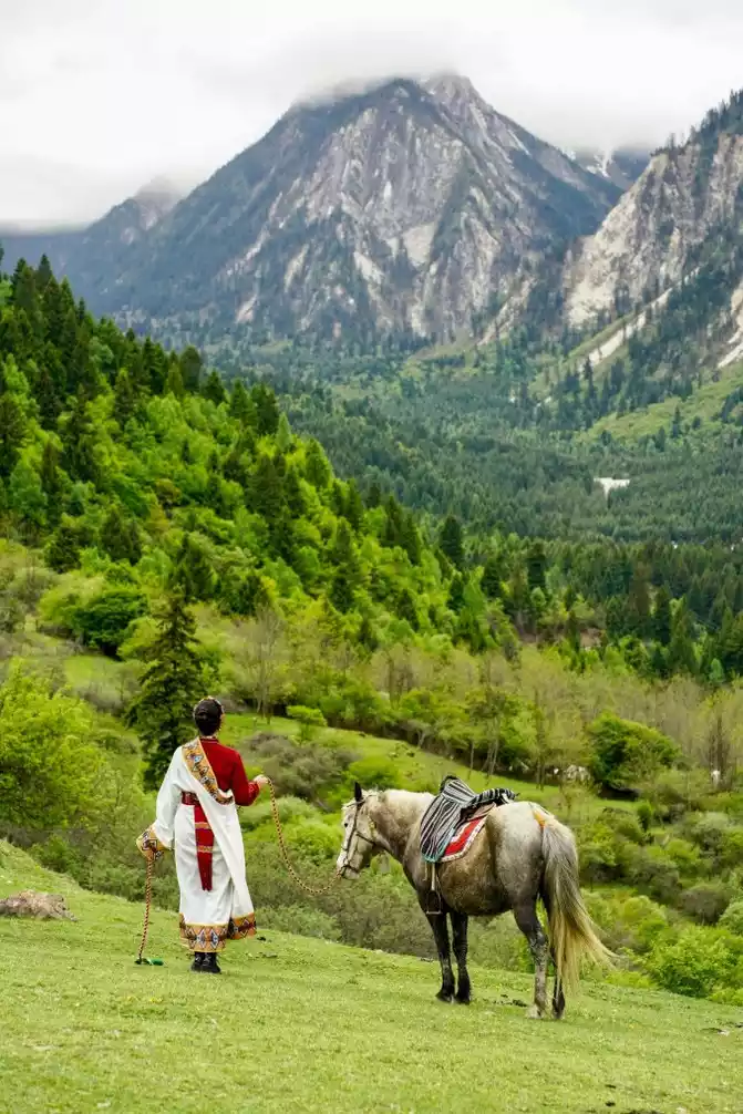 Then, you can let the locals take you on horseback to the hillside and the top of the snowy mountain to take pictures, which is really beautiful.