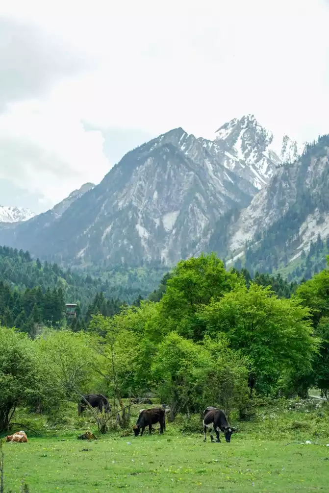 Zhongcha Gou is about 10 kilometers long, with an average altitude of more than 2,000 meters, and at the end of the ditch is a continuous snowy peak with beautiful scenery.