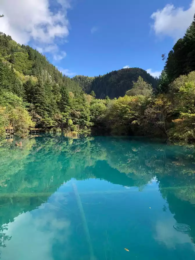 The Jiuzhai Scenic Area rebuilt after the earthquake does not have many tourists, most of them travel independently, the ticket is 259 yuan/person, the water is very large, everyone wears masks in the car, and epidemic prevention is still very important.