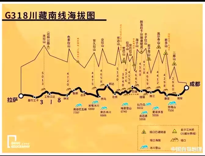 Schematic diagram of altitude of G318 Sichuan-Tibet South Line (download picture online)