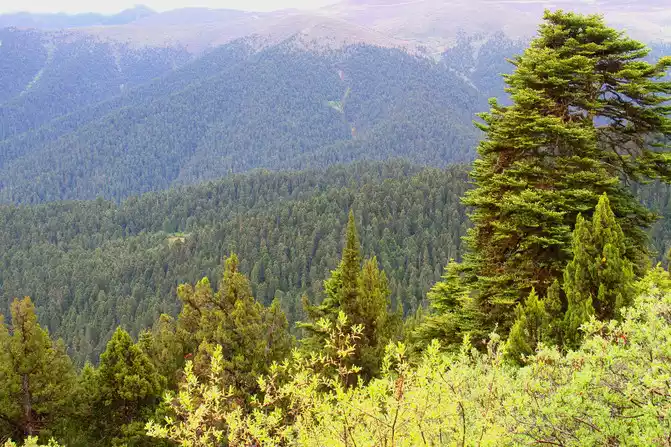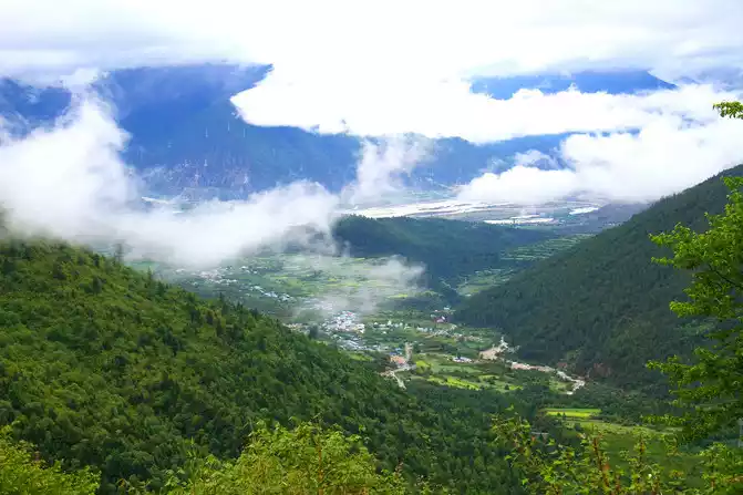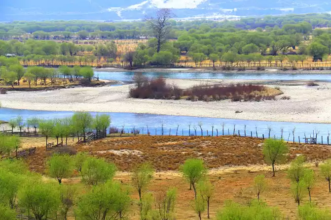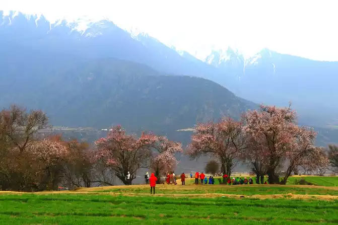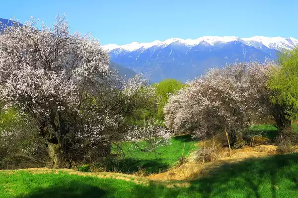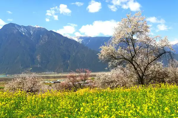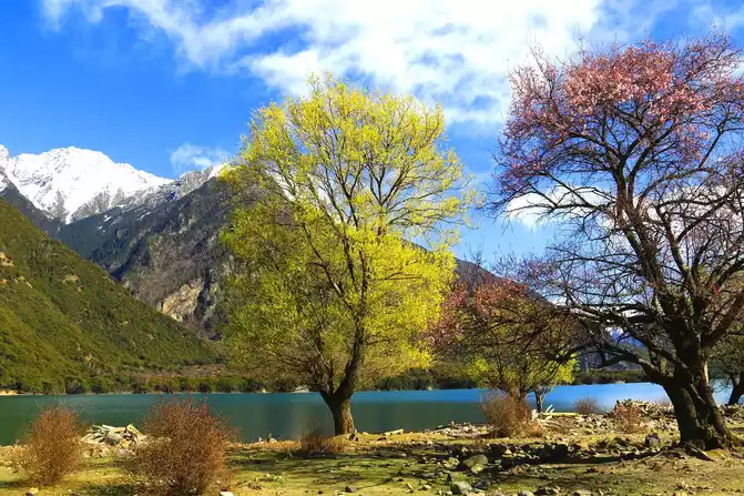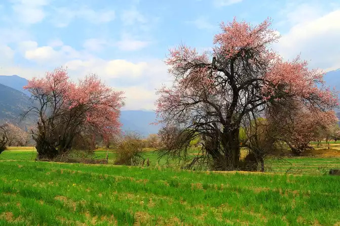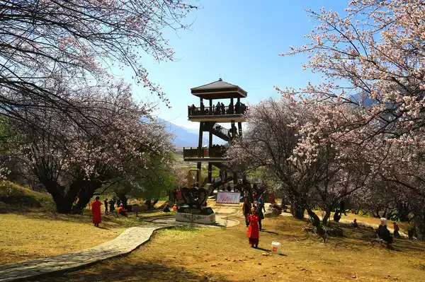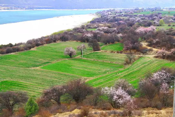 Nyingchi, known in Tibetan as "Throne of the Sun". It is located at an altitude of 2,930 meters, with a humid climate and dense vegetation, and is known as the Jiangnan of Tibet. The Brahmaputra River passes through the Nyingchi area, forming the famous "Brahmaputra Grand Canyon", which is famous all over the world; The famous sacred lake "Basuncuo" of the Red Religion is 120 kilometers away from Nyingchi City and is a tourist resort; There is also the famous Peach Blossom Festival, the famous Gala Village Peach Garden is next to National Highway 318, and when the peach blossoms are in full bloom from mid-March to mid-April every year, flower-viewing tourists from all directions come to a spring date.