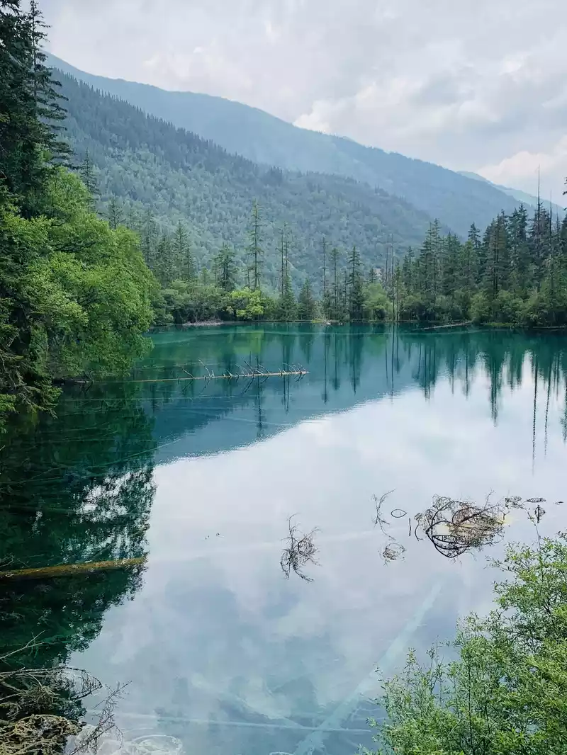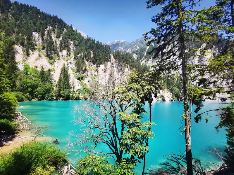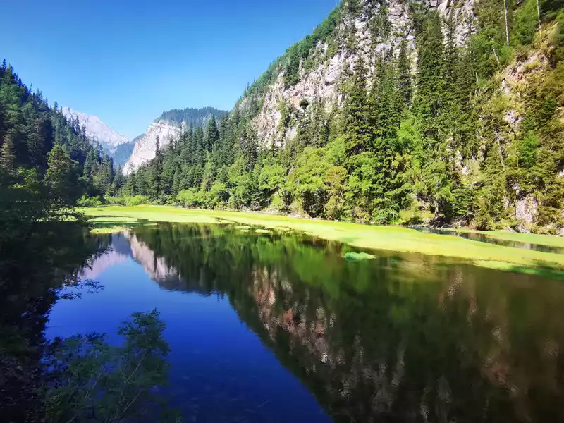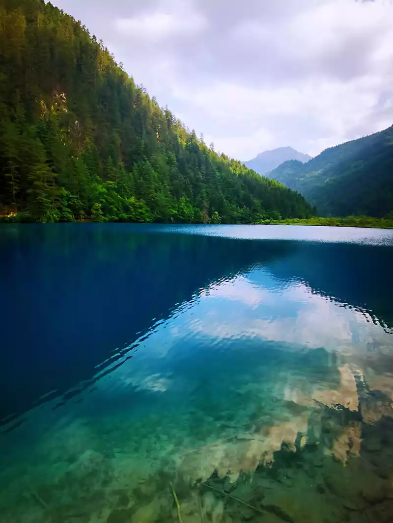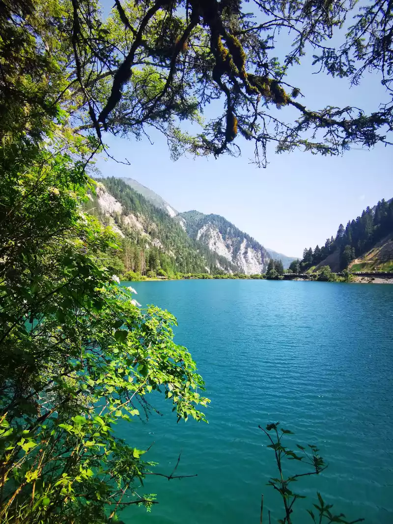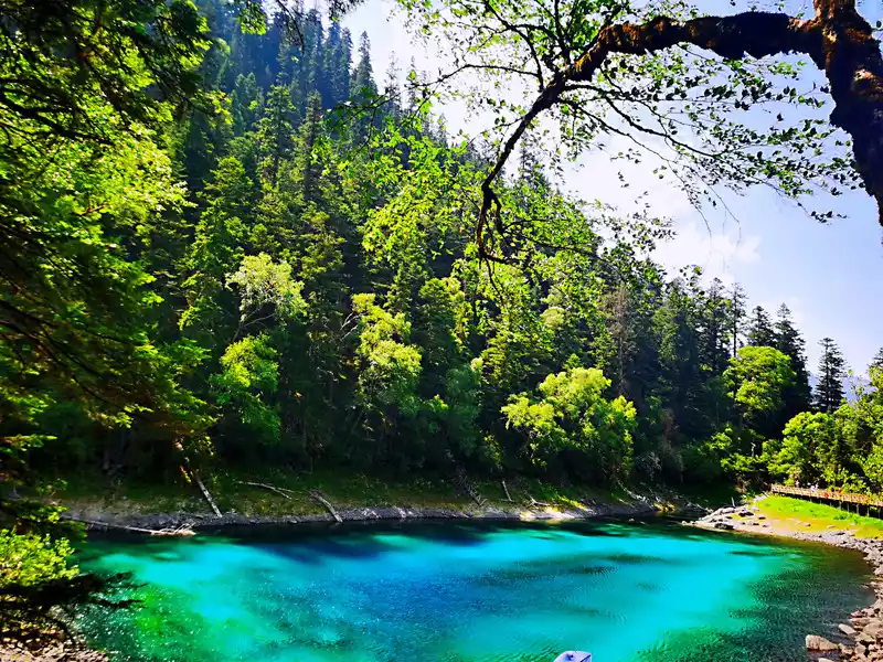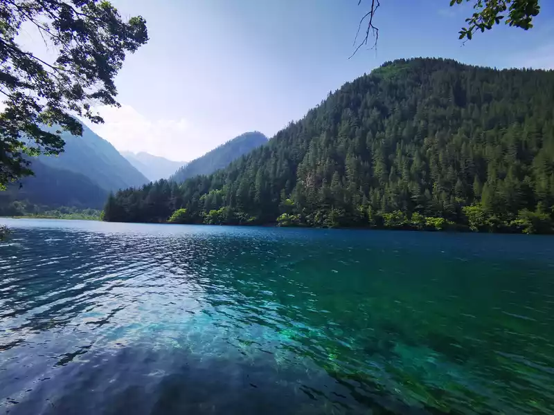 Jinghai takes a sightseeing bus to Nuorilang Central Station, transfers to the sightseeing bus in Zechawa, and takes about 30 minutes to reach Changhai, which is located at the end of Zechawa Gully, with an altitude of 3,101 meters, a total length of about 4,350 meters, a width of 300 meters, a depth of 90 meters, and a storage capacity of 45 million cubic meters.The plane is "S" shaped, belonging to glacial dammed lakes and freshwater lakes, and is the highest altitude, the deepest lake, and the largest area and storage capacity in Jiuzhaigou. Changhai can also be regarded as the mother of all the seas in Jiuzhaigou. Because the Changhai has no water outlet, it can only rely on evaporation and underground rivers to discharge water, and these underground channels are important supplies for other Haizi water sources.