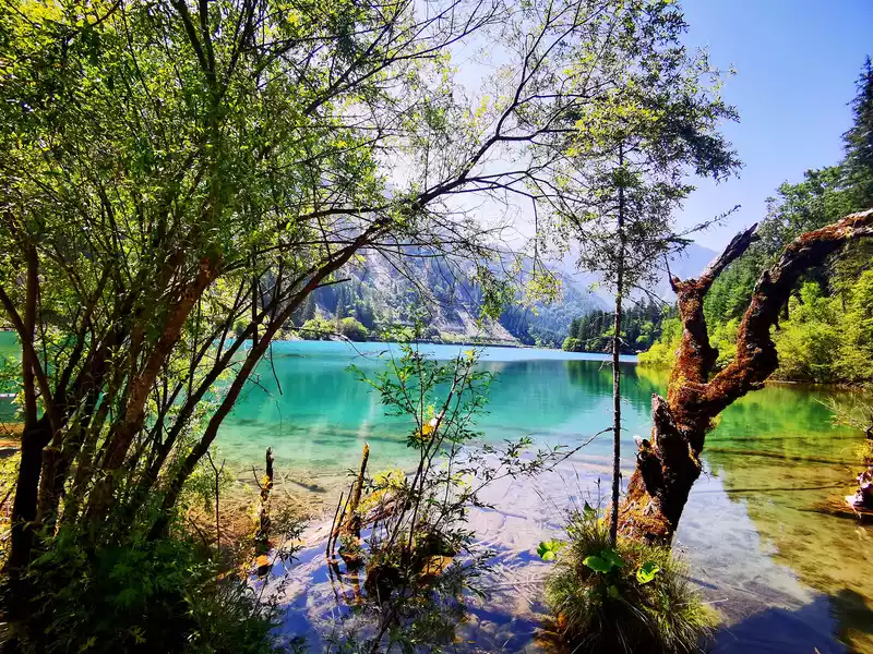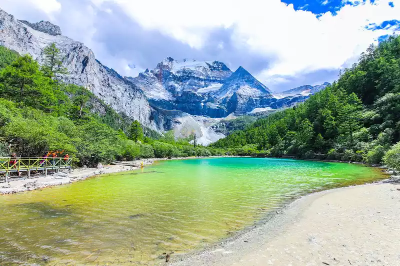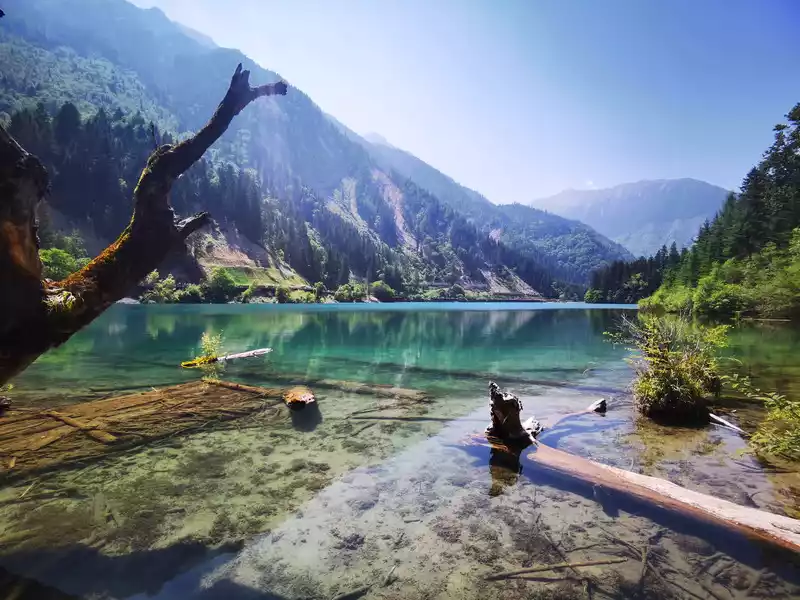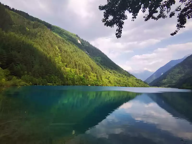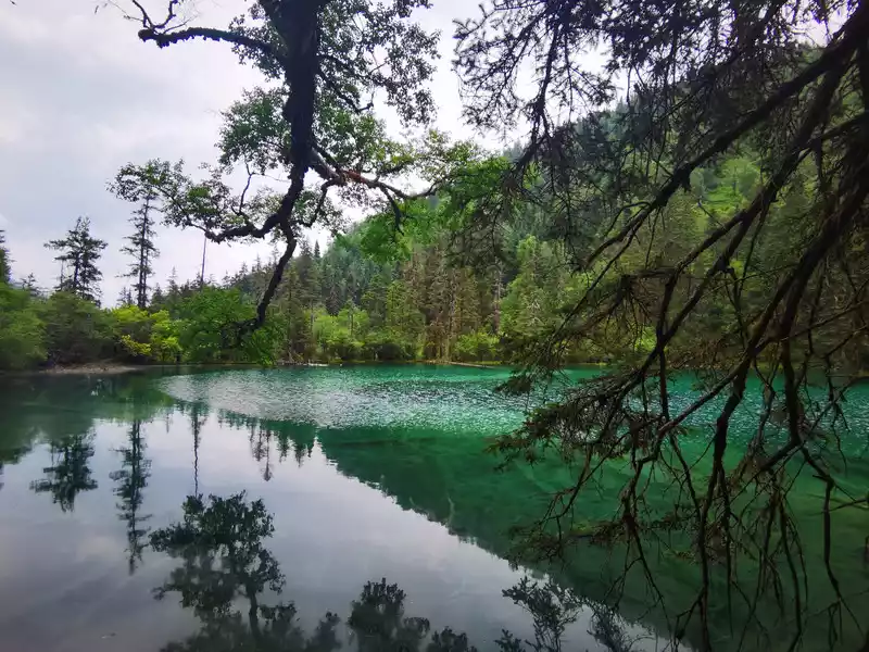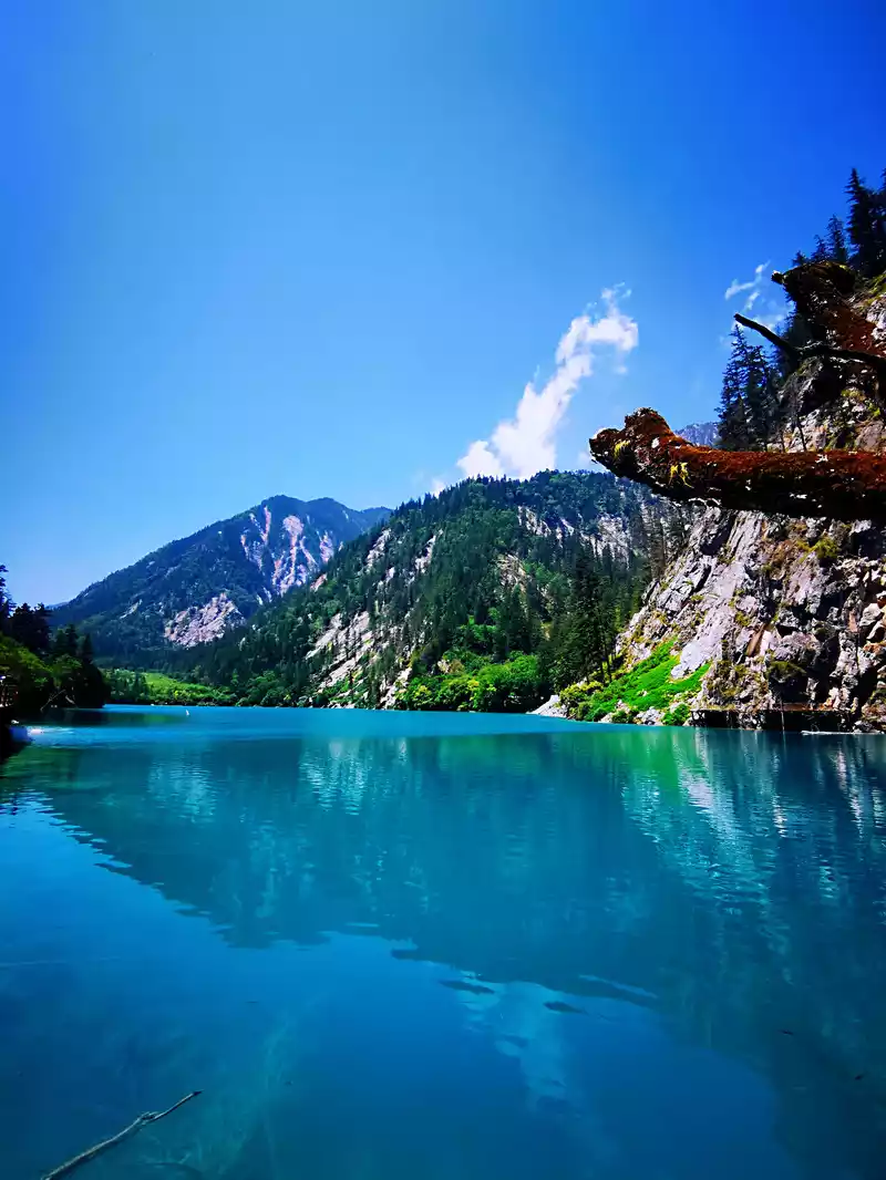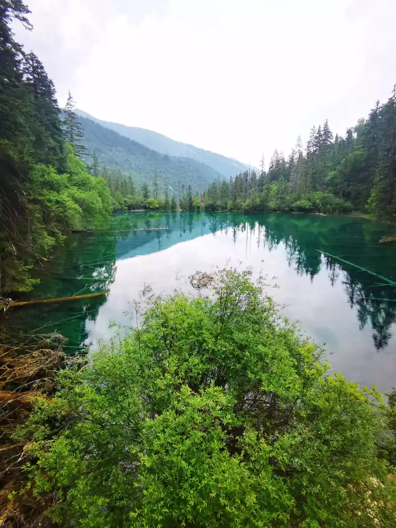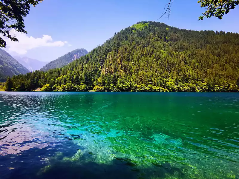 Jinghai takes a sightseeing bus to Nuorilang Central Station, transfers to the sightseeing bus in Zechawa, and takes about 30 minutes to reach Changhai, which is located at the end of Zechawa Gully, with an altitude of 3,101 meters, a total length of about 4,350 meters, a width of 300 meters, a depth of 90 meters, and a storage capacity of 45 million cubic meters.The plane is "S" shaped, belonging to glacial dammed lakes and freshwater lakes, and is the highest altitude, the deepest lake, and the largest area and storage capacity in Jiuzhaigou. Changhai can also be regarded as the mother of all the seas in Jiuzhaigou. Because the Changhai has no water outlet, it can only rely on evaporation and underground rivers to discharge water, and these underground channels are important supplies for other Haizi water sources.