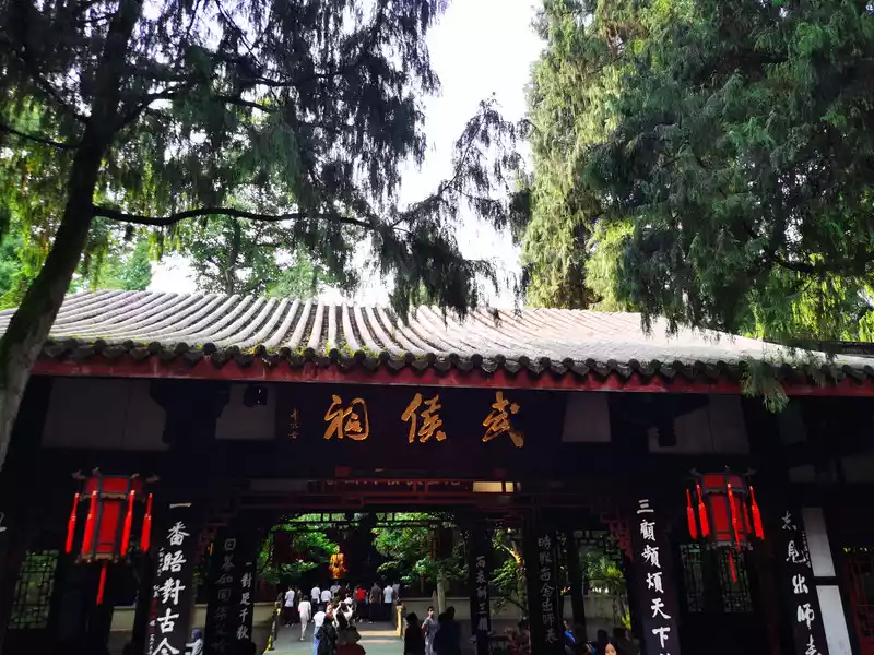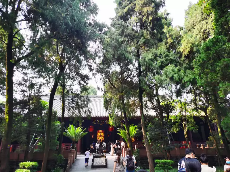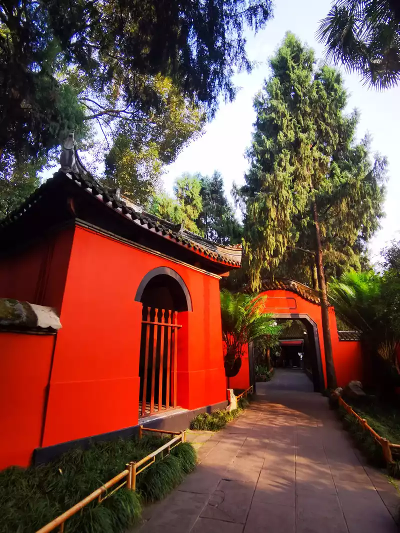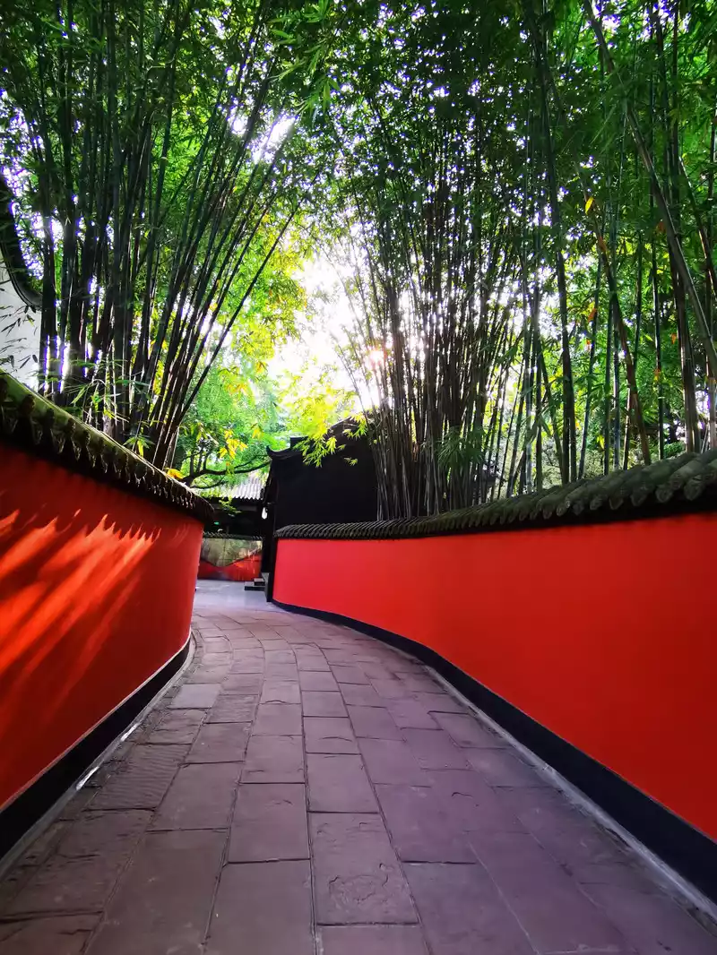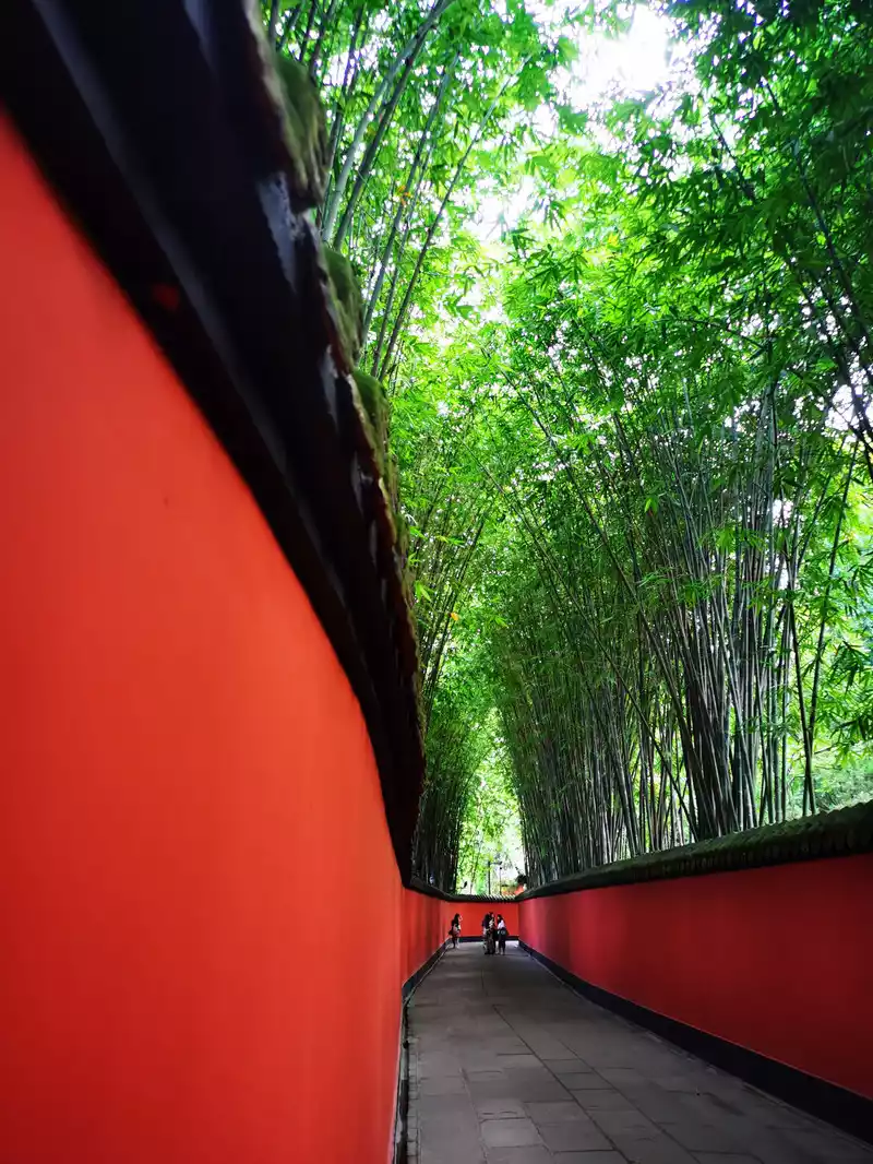 The second stop is Wuhou Temple, Wuhou Temple is an ancestral hall commemorating Zhuge Liang, the prime minister of Shu Han during the Three Kingdoms period of China, Wuhou Temple is named because Zhuge Liang was named Marquis of Wuxiang during his lifetime, Wuhou Temple is adjacent to Han Zhaolie Temple, Liu Bei's tomb (Huiling), there are many statues of generals and scribes in the Three Kingdoms period, if you are a fan of the Three Kingdoms, you can come and see, in general, this is a historical ancient building complex, don't expect much from the statues of generals and scribes, otherwise there will be a gap; I prefer some quiet corners outside the main halls of the Wuhou Temple, which have a deeper artistic conception; There is also a red Internet celebrity wall here, the red wall is matched with green bamboo, the photo is very blockbuster, there are many people who come to admire it, want to take a picture of no one, need time, it is recommended to come over 30 minutes before the park closes in the afternoon, there are very few people, easy to take pictures.