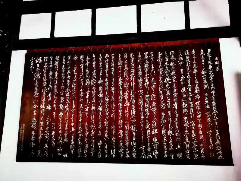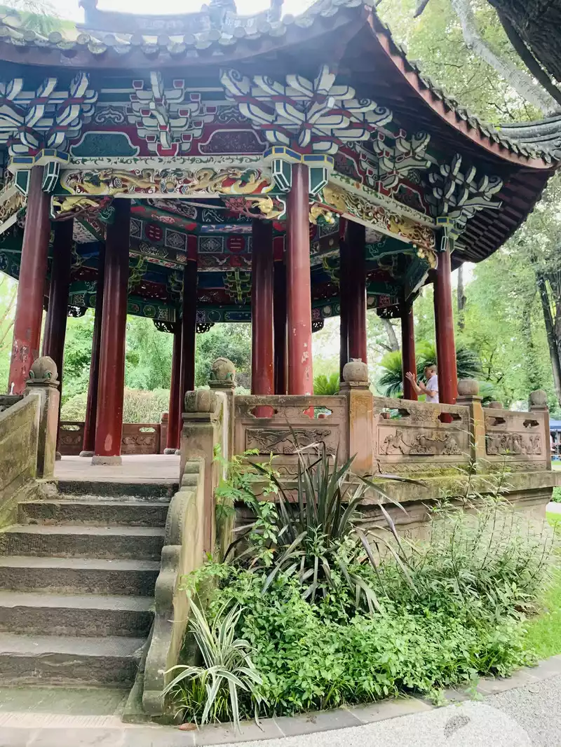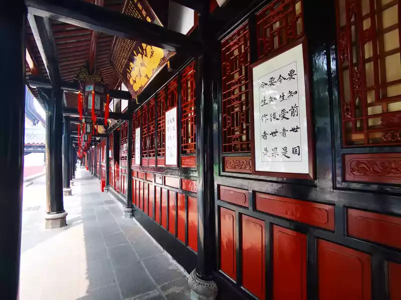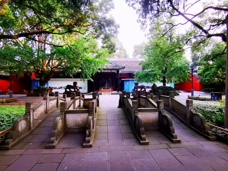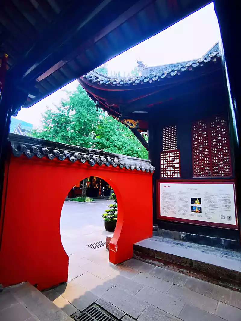 The second stop is Wuhou Temple, Wuhou Temple is an ancestral hall commemorating Zhuge Liang, the prime minister of Shu Han during the Three Kingdoms period of China, Wuhou Temple is named because Zhuge Liang was named Marquis of Wuxiang during his lifetime, Wuhou Temple is adjacent to Han Zhaolie Temple, Liu Bei's tomb (Huiling), there are many statues of generals and scribes in the Three Kingdoms period, if you are a fan of the Three Kingdoms, you can come and see, in general, this is a historical ancient building complex, don't expect much from the statues of generals and scribes, otherwise there will be a gap; I prefer some quiet corners outside the main halls of the Wuhou Temple, which have a deeper artistic conception; There is also a red Internet celebrity wall here, the red wall is matched with green bamboo, the photo is very blockbuster, there are many people who come to admire it, want to take a picture of no one, need time, it is recommended to come over 30 minutes before the park closes in the afternoon, there are very few people, easy to take pictures.