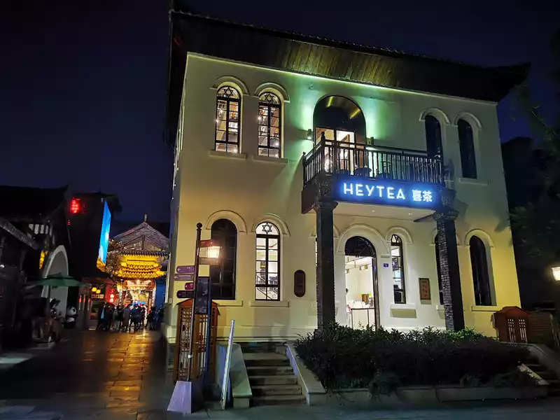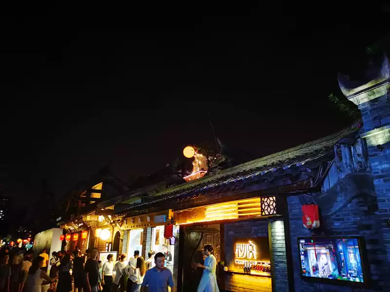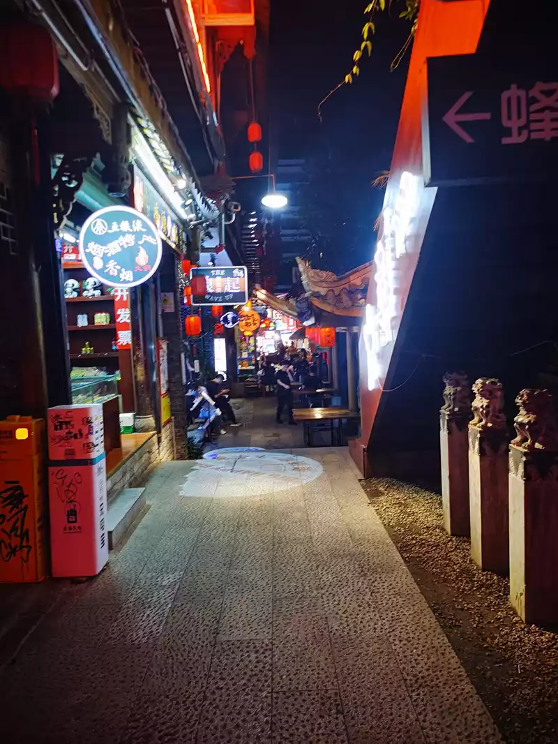 The fourth stop is Kuanzhai Alley, Shu Feng Yayun has come out at more than 21:30, arrived at Kuanzhai Alley, the merchants have slowly closed the store, we took a few photos of this trip by light, and went home, and found Wallace to quickly solve dinner near the hotel, and after walking for a day, I did a pedicure on the Shangle Foot Road upstairs in Wallace, more than 150 for two people, affordable, and the technique is quite passable, so that the fatigue of the body has been relieved, and the day's walking has come to an end.