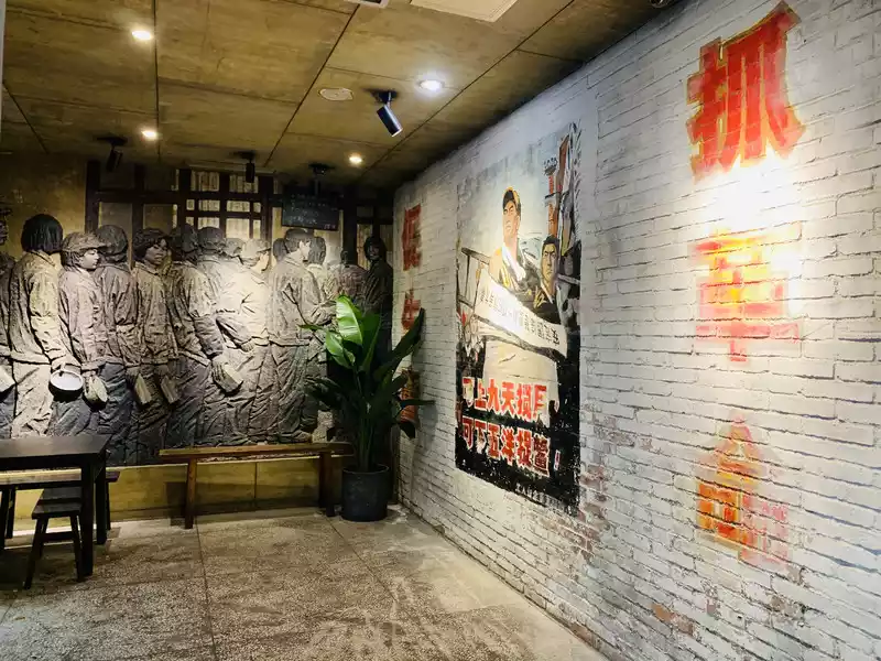 In the morning, it is arranged for the memory of the eastern suburbs of Chengdu, a niche attraction, the former Chengdu state-owned red light electron tube factory, known as "Shougang in the north, red light in the south", now the original factory has been relocated, the original factory building as a whole is preserved, designed as today's cultural and creative park, the future and the past are intertwined, there are not many tourists, you can slowly explore. Due to today's loose itinerary, sleep until you wake up naturally, check out and leave your luggage in the hotel, when you take a taxi to the eastern suburbs of memory, it is almost noon, then solve the lunch problem first, walk around the eastern suburbs memory to take a look, walk into the restaurant called Dongjiao canteen, the restaurant space is very large, using some old objects in the early days of the founding of the People's Republic of China, illustrations and some old equipment of the former Chengdu state-owned red light tube factory for decoration, quite interesting, the amount of dishes is sufficient, cost-effective, we have fish and meat, eat to eat, the cost is 155 yuan, it is worth recommending.