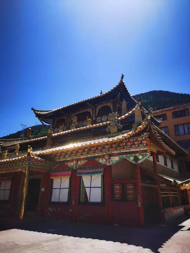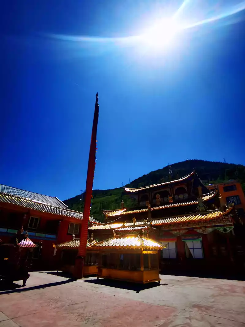 Temple Due to oxygen inhalation, although there is still some high reaction today, but it is still in an acceptable atmosphere, after the nucleic acid test in Ruoerge County People's Hospital, continue the trip, the next stop is Chuanzhusi Town; Speaking of magic, we drove to Chuanzhusi Town at noon, here it is obvious that the high reaction is gone, the head does not hurt, it is relaxed all of a sudden, the whole family is not high rebellion, check the altitude, more than 2900 meters, down the boundary of 3000 meters, and the magical high reaction is all good.