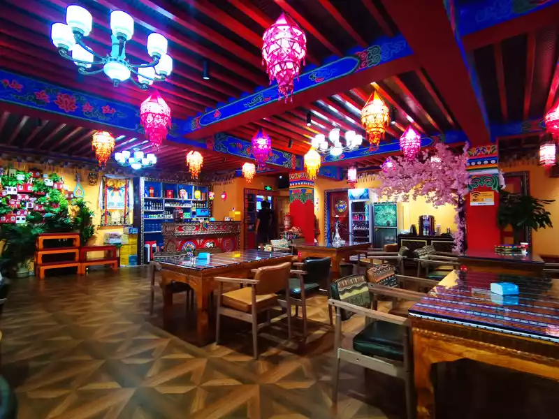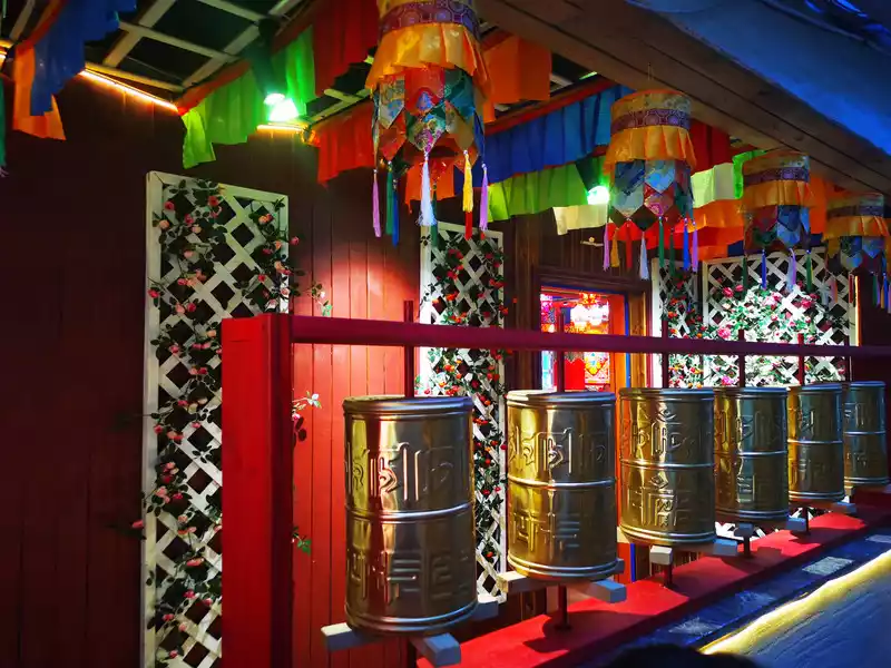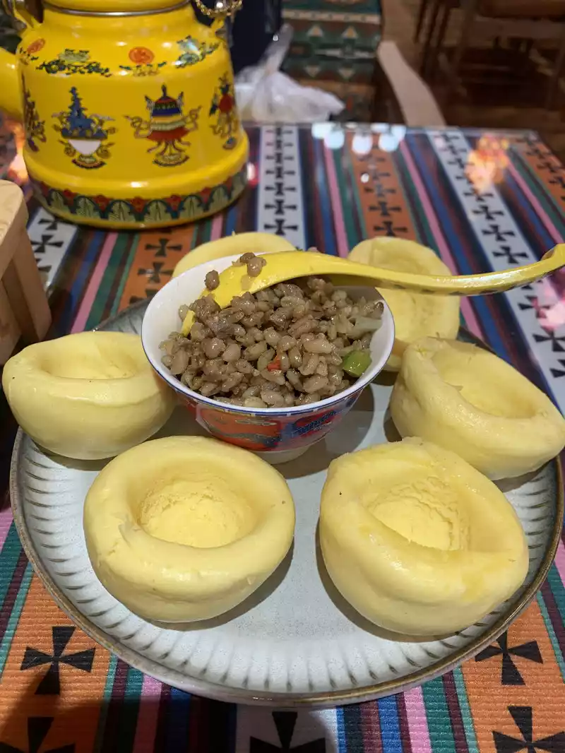 Check in, walk around, buy some dry food for tomorrow's Jiuzhaigou day trip, dinner Jiuzhaigou Himalayan Tibetan meal bar, a cost-effective Tibetan meal, a set meal 187 yuan, yak beef cover, highland barley nest head, Tibetan bibimbap, fried wild vegetables, butter tea, sufficient portion, good taste, good environment, worth recommending.