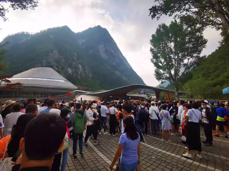According to our own actual situation, we planned a one-day trip to Jiuzhaigou, the route is roughly from the entrance of the scenic spot to the last stop of Rizegou primeval forest, and then go back to Nuorilang Central Station, turn to the Changhai and Wucai Pond in Zechawagou, and then return to Nuorilang Central Station, from here to visit Shuzhenggou scenic spots to Goukou out of the scenic spot. Go to the entrance of the scenic spot early in the morning to queue up, in order to reach the entrance as soon as possible, choose to take a taxi to go, cross the road of people walking, the peak time is less than 3 kilometers away 20 yuan, not too expensive, but at least there are hundreds of people in line; The park opens at half past seven, there are many people queuing up at about seven o'clock, a lot of tour groups, we are okay, the front is still close to the entrance, the beginning of entering the park, about 10 minutes through the temperature measurement, code checking to the entrance of the sightseeing bus to queue, there are many cars, about 10 minutes to line up the sightseeing bus, officially enter the scenic spot, about 30 minutes of driving, detour to the primeval forest station.