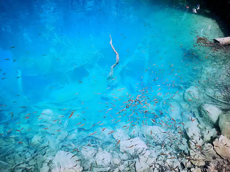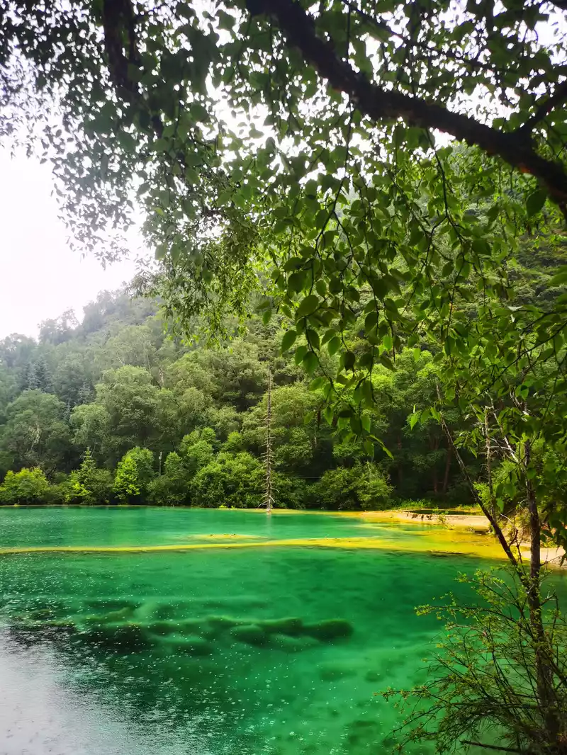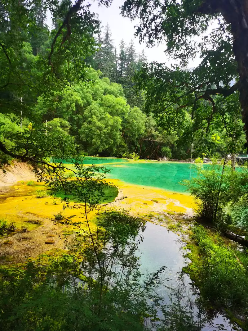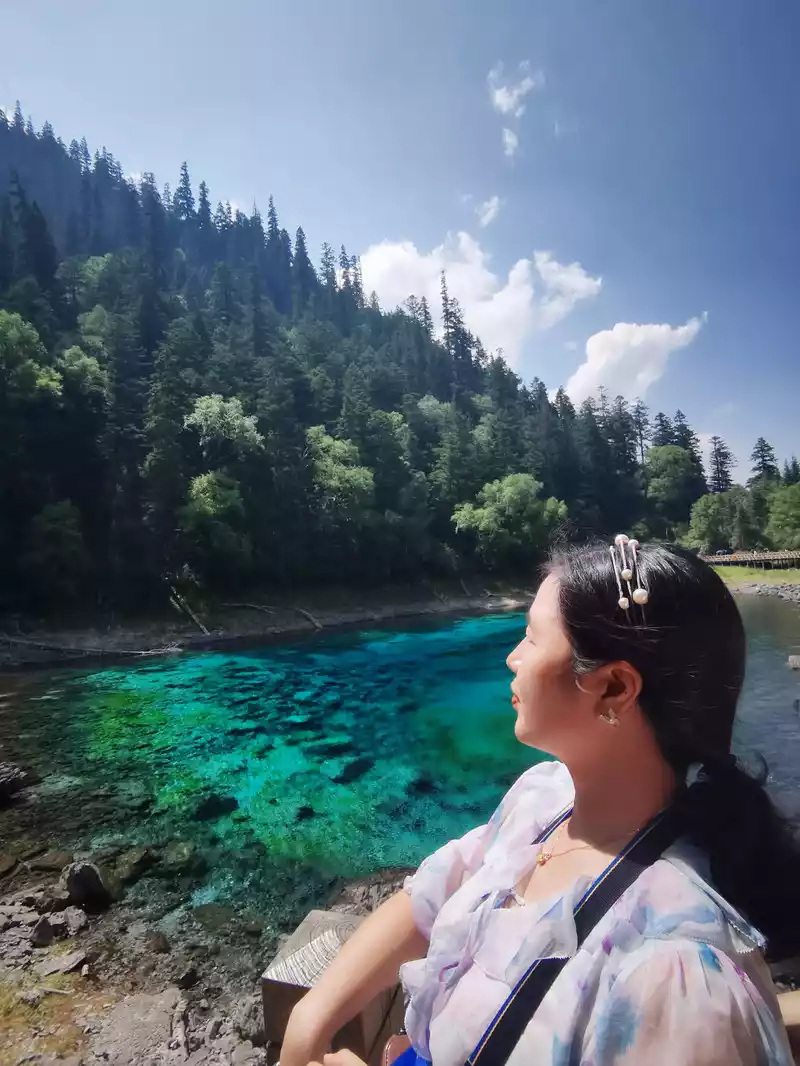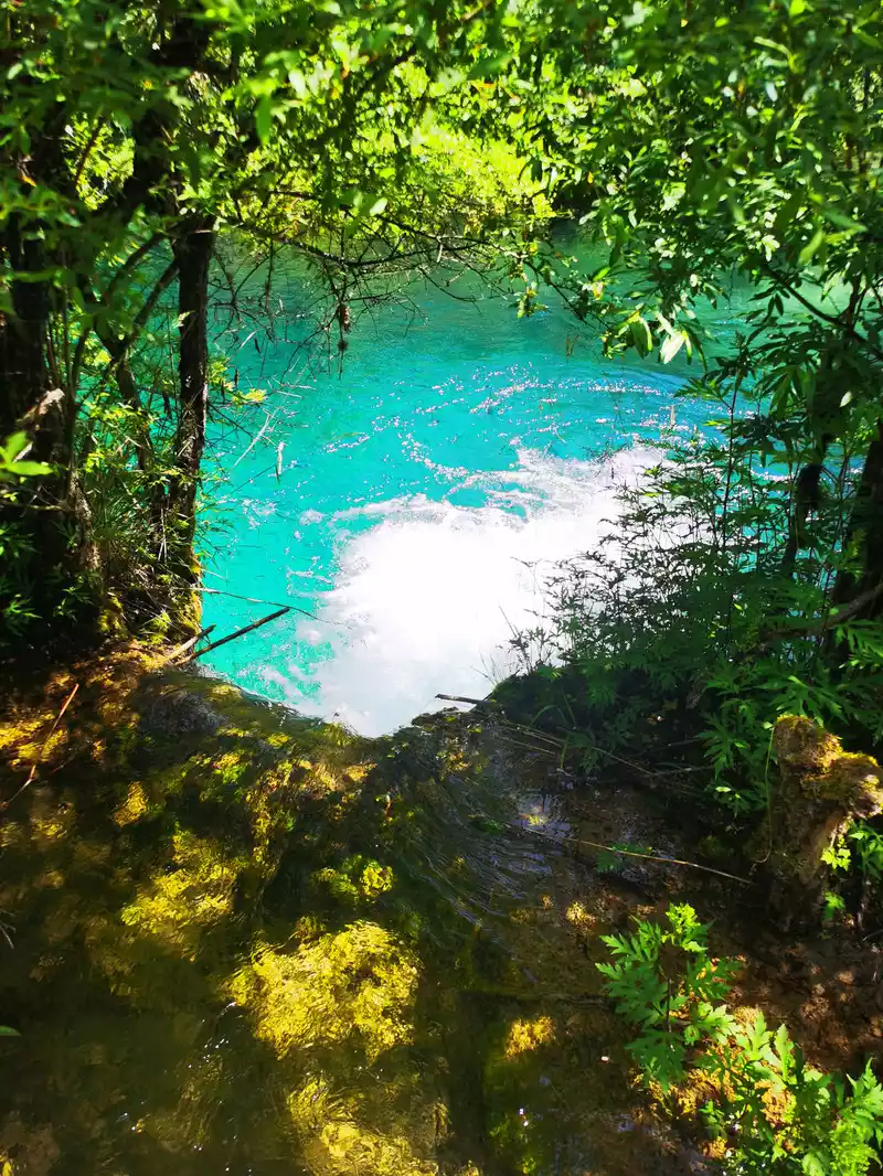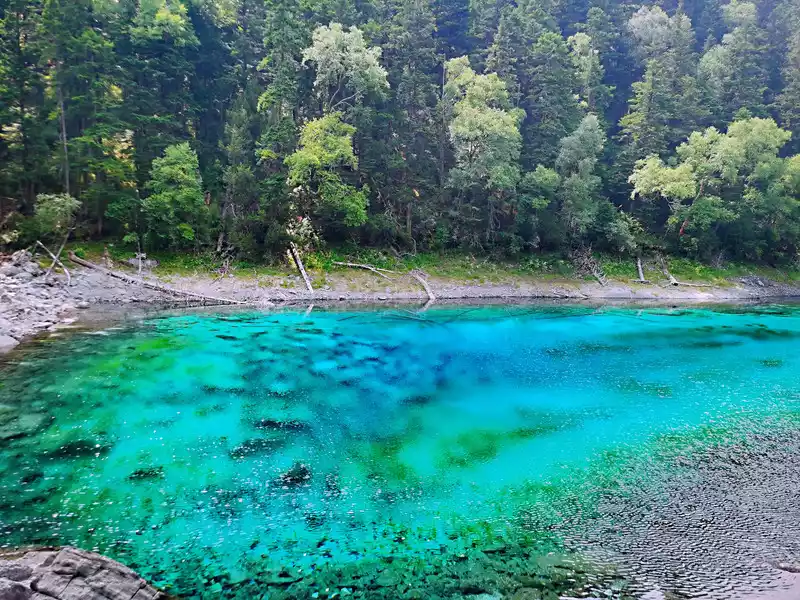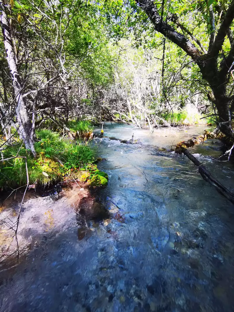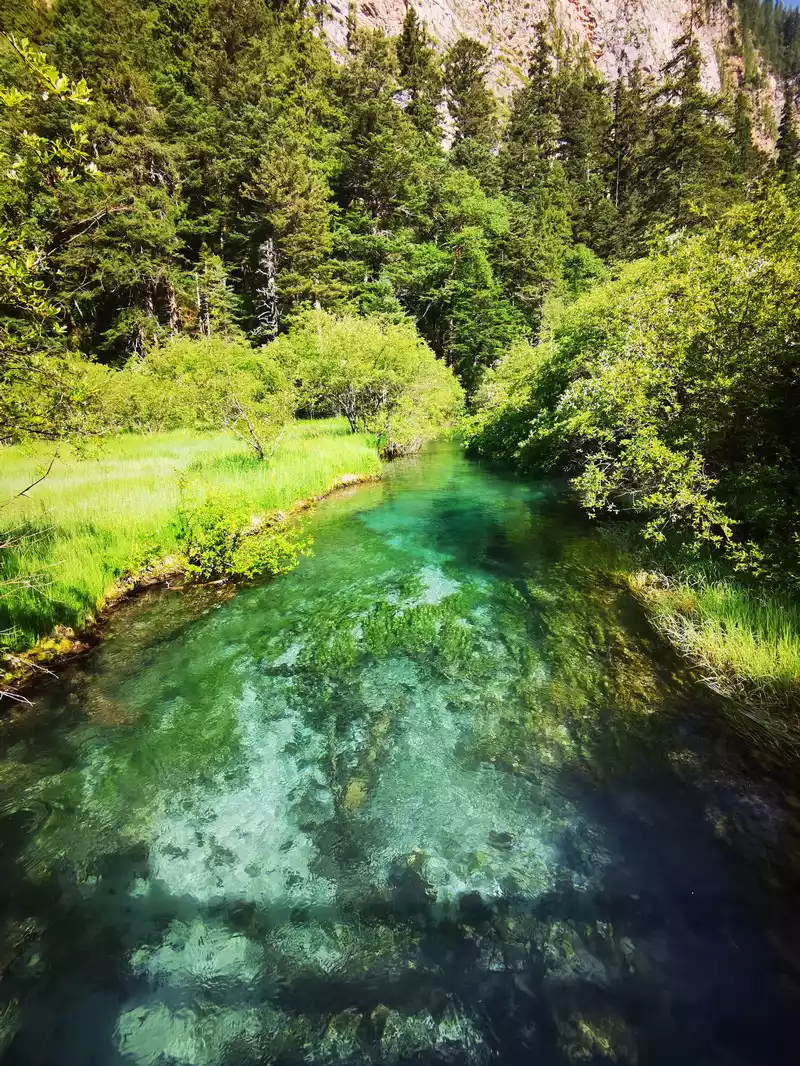 Coming down from the long sea, we arrived at another essence attraction in Jiuzhaigou - Colorful Pool, at an altitude of 2,995 meters, which is the essence of Jiuzhaigou Lake, and is the smallest and most colorful pool in Jiuzhaigou. According to legend, the colorful pool is the place where the goddess Se Yan groomed, and the male god came from the long sea to fetch water for her every day, and over time,'s feet stepped on 198 steps on the cliff, and the rouge washed off Se Yan on her face also became this amazing colorful pool.