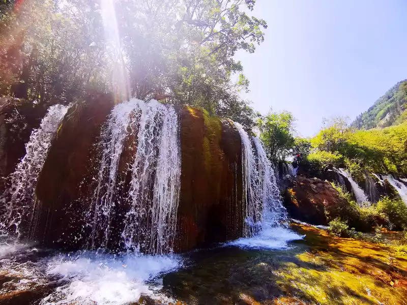 The next one arrives at Shuzheng Waterfall, which is 2295 meters above sea level, 25 meters high, and the top of the waterfall is 72 meters wide, located in the upper reaches of Shuzheng Group. Before the formation of Shuanglonghai Waterfall, it was the first waterfall in Jiuzhaigou.