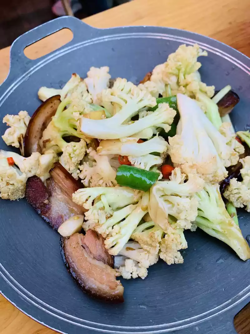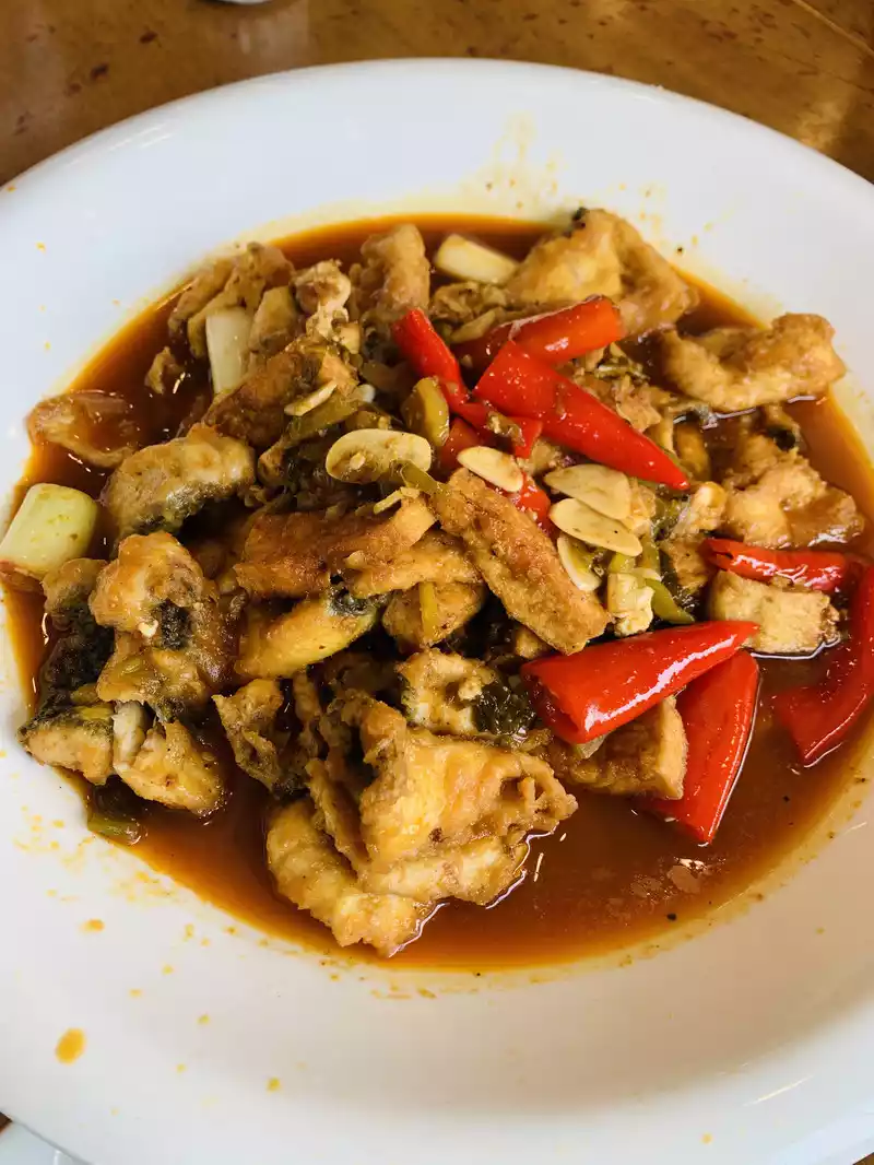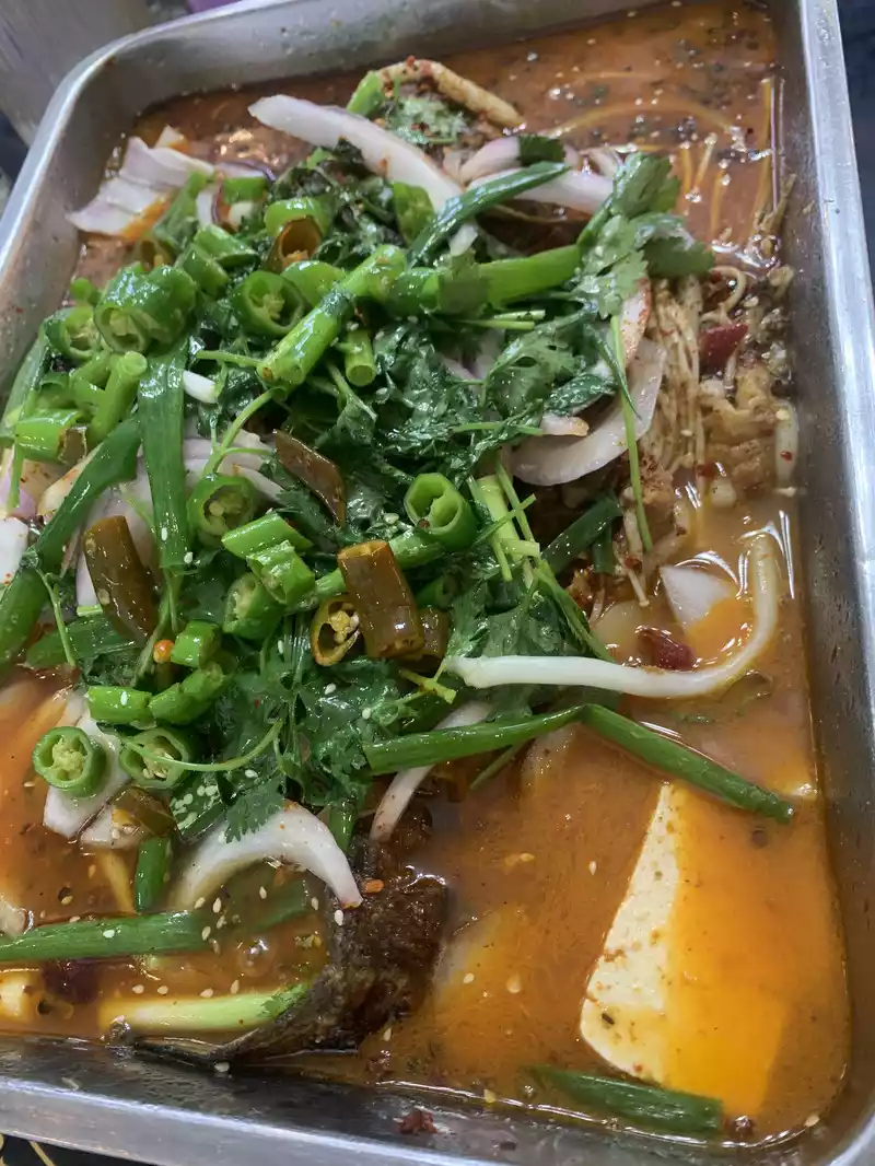 At the entrance of the scenic spot, we took a car for 15 yuan back to the inn, we were hungry and didn't want to go anymore, to the cherry creative kitchen next to the inn, the boss is the chef, very talkative, the grilled fish is very fragrant, very flavorful, the slightly spicy taste is very in line with us, the simple stir-fried cabbage is the best green dish for our trip to Sichuan, in general, the taste is very good, the cost is not cheap, but it is worth tasting; While eating and chatting with the boss, I learned that our breakfast tomorrow may be the last day's breakfast he undertakes, he is really too busy, the boss's cooking skills are really good, and it can be regarded as fate, although I didn't eat their breakfast this morning because I was in a hurry to enter the scenic spot, I can't miss it tomorrow.
